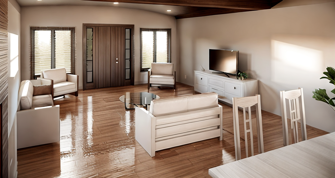 do not change the building do not change the materials make the mood vibe environment the same as the reference images add more texture and sharpness to materials add polished concrete floor