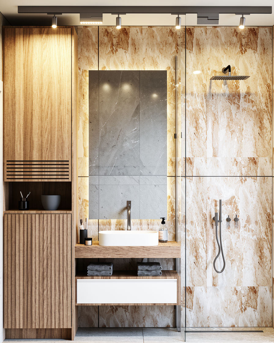 photorealistic architectural image of a contemporary nordic institutional building with a sculptural black volume and a wooden facade with vertical slats recessed windows and a sheltered terrace clear cold blue sky crisp winter light pale blue tones low sun angle soft but defined shadows cool ambient light european winter atmosphere editorial architectural photography style minimalist composition strong framing negative space calm and refined mood slightly off centered subject eye level perspective 35mm lens natural proportions subtle depth of field strong contrast between exterior and interior cool exterior tones vs warm interior glow interior life visible through windows warm artificial lighting 2700k 3000k inside working reading walking soft movement realistic silhouettes varied rooms offices circulation communal areas material realism textured natural wood with slight weathering matte black cladding absorbing light realistic glass reflections with transparency subtle reflections of sky color grading editorial desaturated palette cool blues outside warm amber tones inside soft contrast no hdr kodak portra 400 film look fine grain soft highlight roll off analog feel slightly muted colors subtle realism details slight imperfections fingerprints on glass uneven lighting inside variation in intensity between rooms few people outside with winter clothing natural poses no staging magazine quality architectural photography calm atmospheric storytelling driven early evening blue hour deep blue sky stronger warm interior glow higher contrast between inside and outside