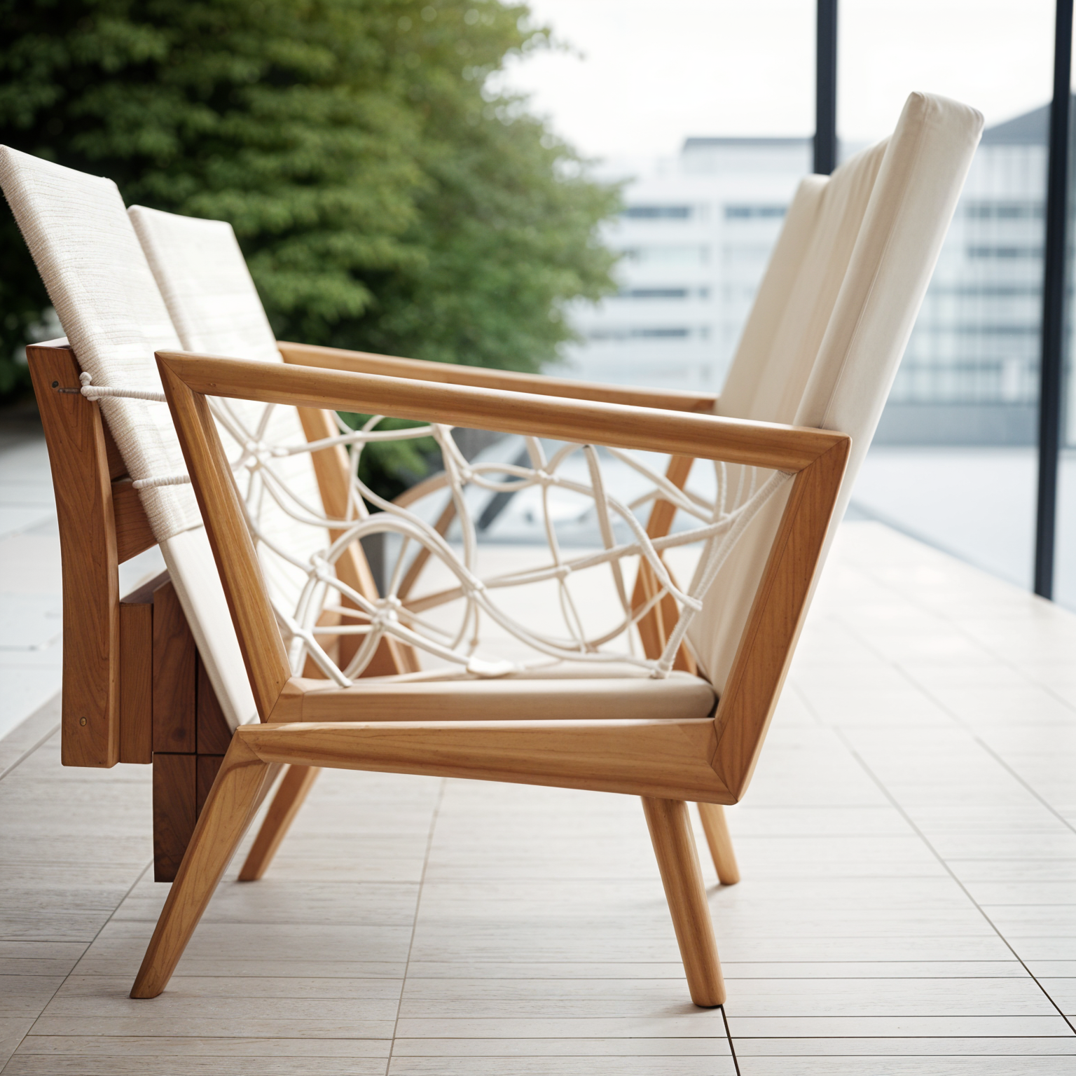 modernist rope weaving design back chair upholstered seat and back wooden legs finish architecture