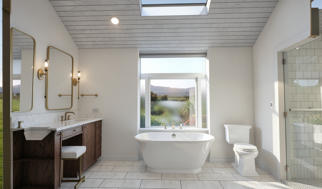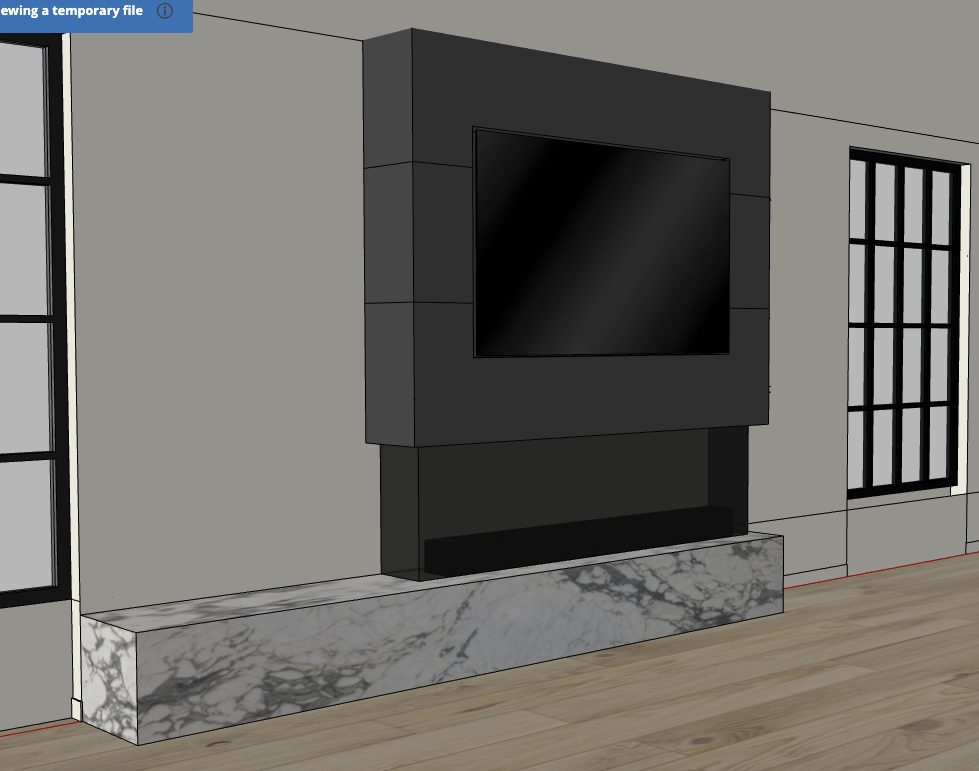 photorealistic interior natural soft daylight realistic materials and accurate shadows preserve the original image exactly same geometry proportions layout fireplace design tv placement stone and composition no redesign no object changes no added details no substitutions enhance only realism through realistic metal finish on the hood subtle variation natural reflections not flat improved stone texture clarity and depth no change to veining pattern accurate shadowing under the hood and along edges stronger contact shadows at base and floor natural light falloff and balanced exposure realistic reflections on tv screen subtle not mirror like refined material roughness nothing overly matte or glossy keep colors consistent and neutral avoid warm yellow color shift high end architectural photography look