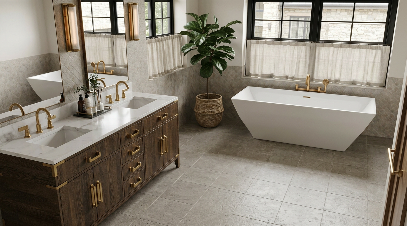 wall and ceiling same color make bath more traditional