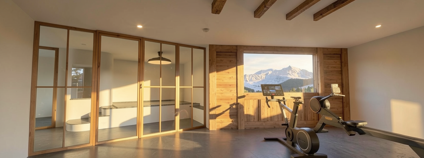 add indirect lightening in the right glass cabinet and on the ceiling the glass of the door is dark grey