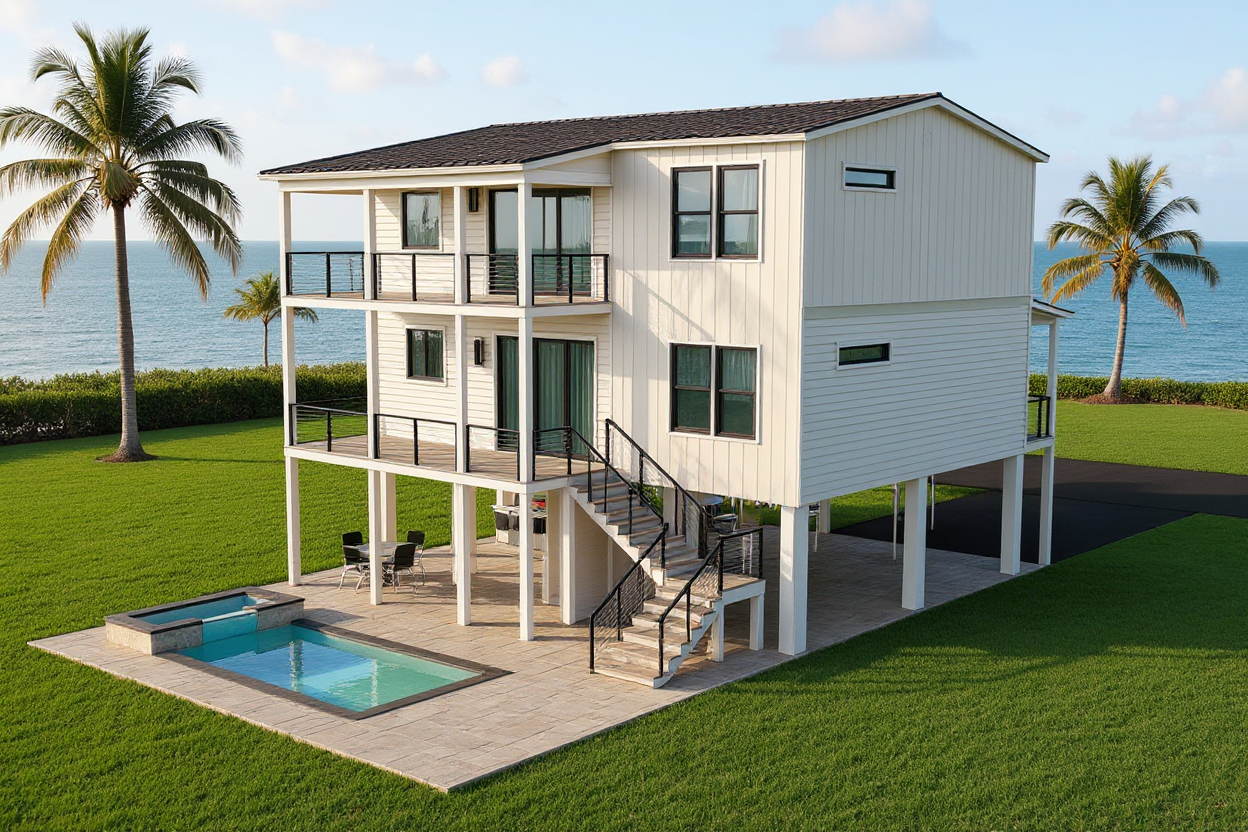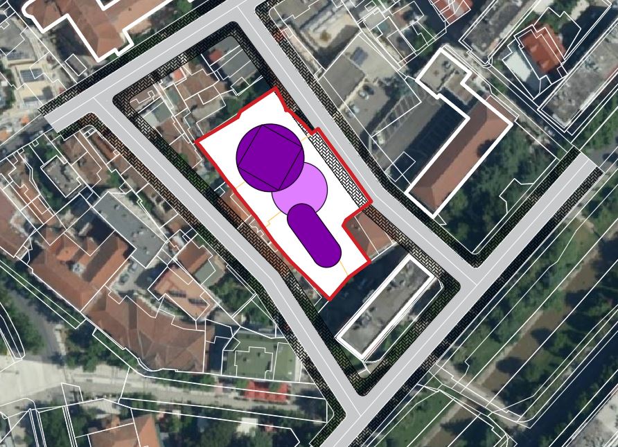a manicured lawn layered flower beds low maintenance shrubs native plants stone pathway leading to the entrance make this landscape only inside the red boundary the violet hatches is a residential tower