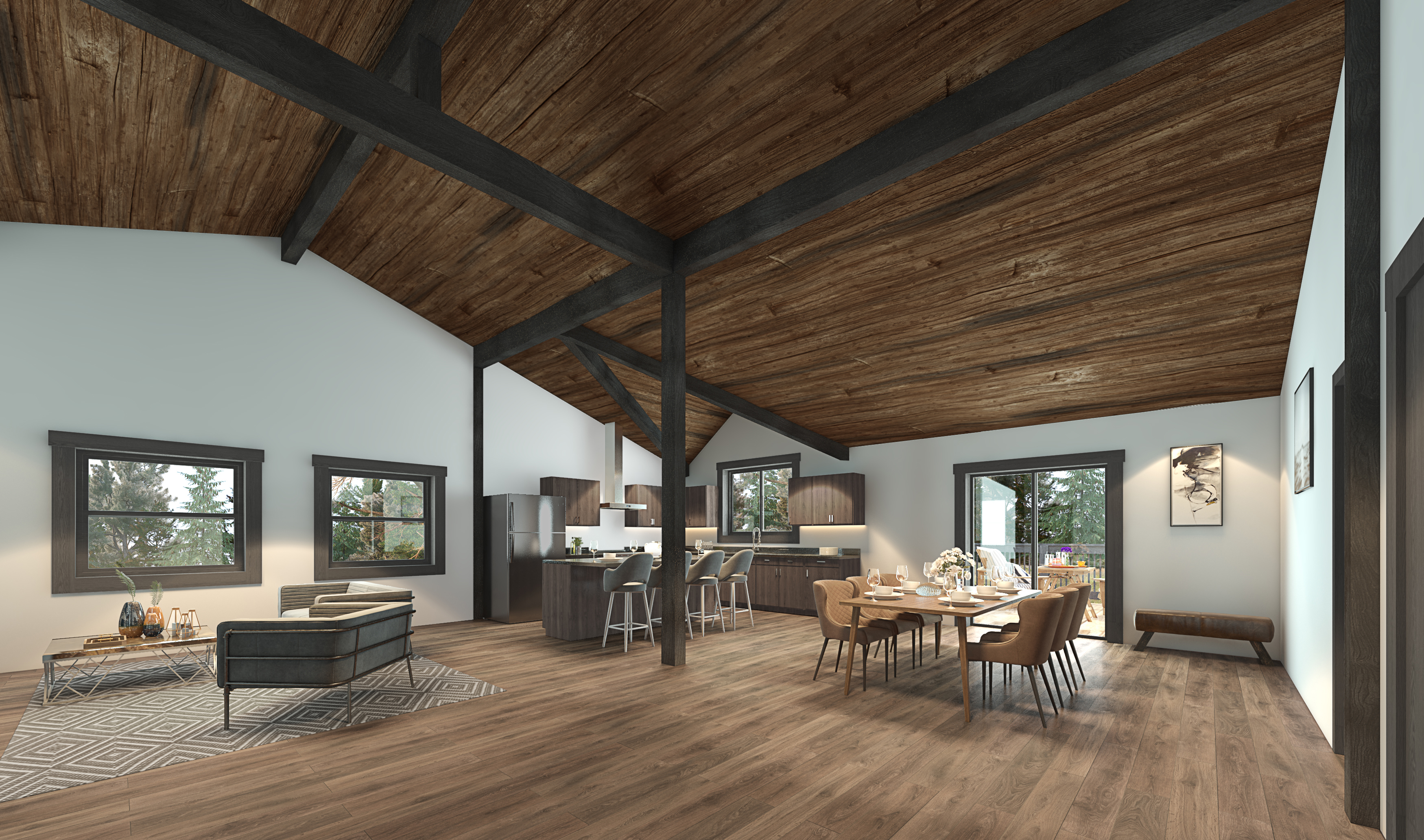 a warm timber interior architectural visualization wide angle living space with natural wood ceilings vertical timber wall panels oak flooring and minimal built in furniture soft daylight filtering through large windows calm and serene atmosphere hybrid architectural visualization combining photorealistic lighting and materials with delicate hand drawn graphite linework subtle architectural diagrams floor plan fragments and fine technical annotations floating lightly over the scene cinematic interior render soft shadows muted neutral palette scandinavian japandi influence editorial architectural composition calm spatial depth conceptual yet realistic presentation