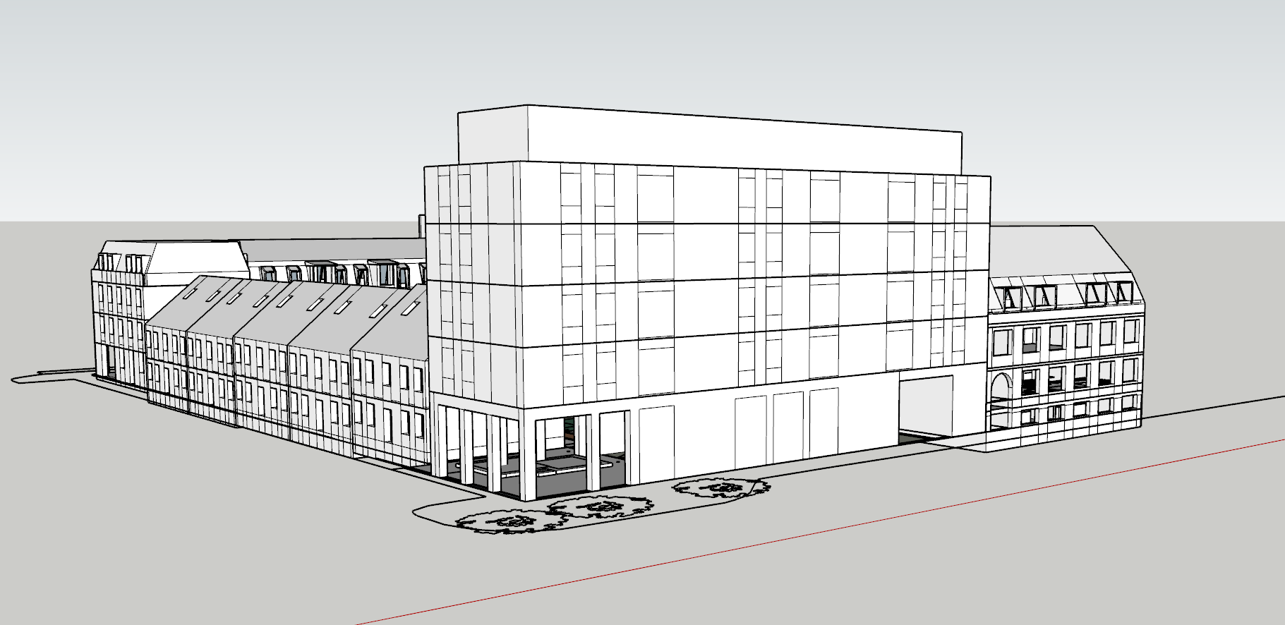 exterior shot show only the large building in the middle red bricks and dark grey aluminum windows like it s new york penthouse floor has balconies and windows