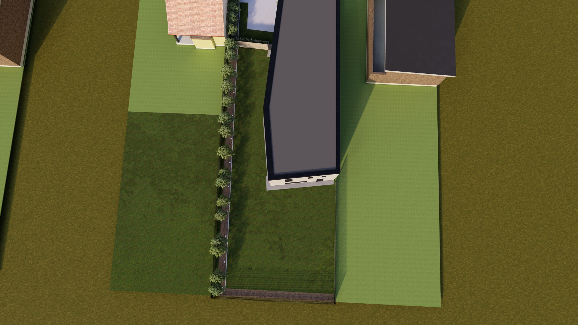 please make a modern nice garden inside the fence borderd space something not too dramatic and not too expensive dont need a lake or pool add some path to the garden please leave more grass
