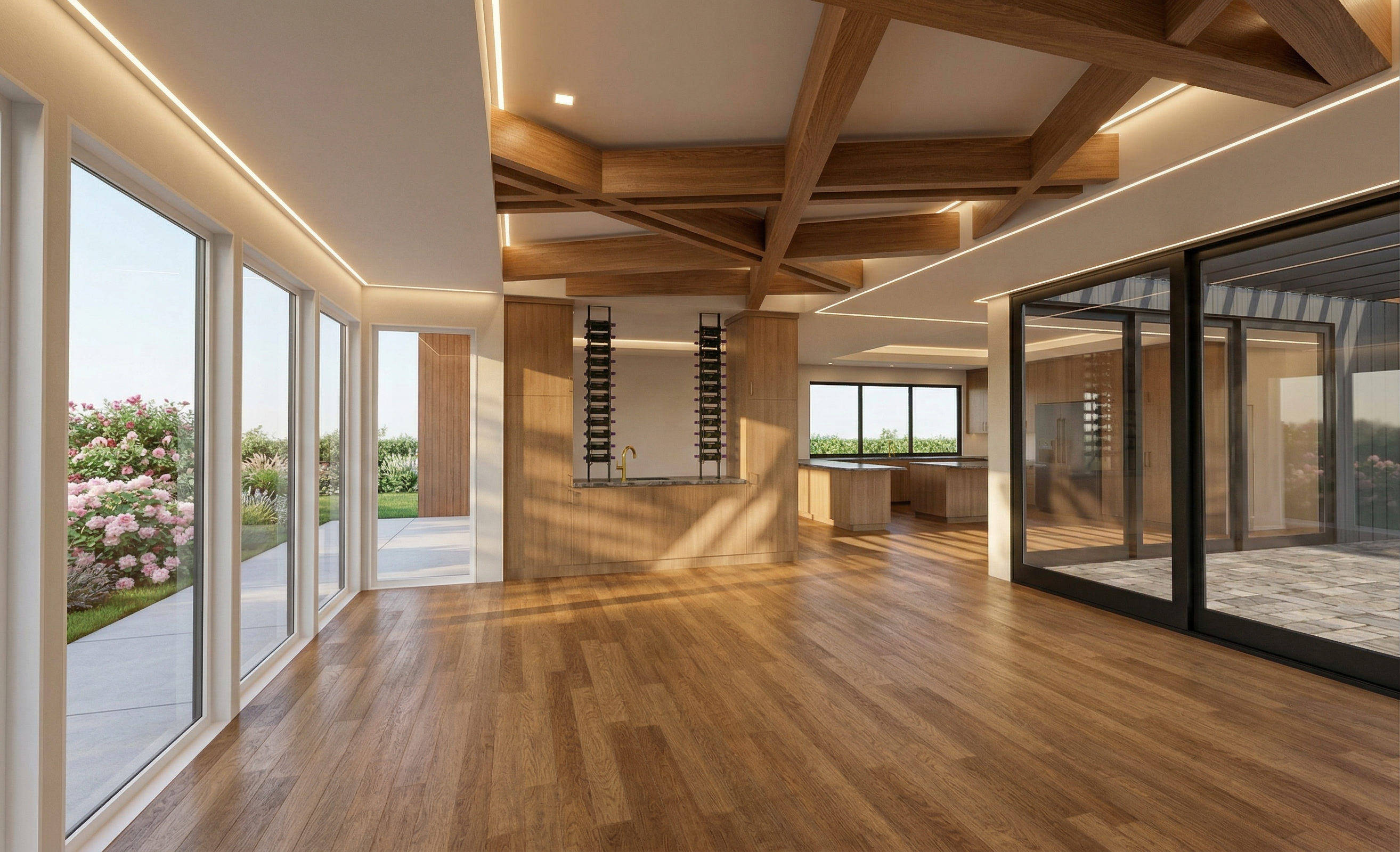 summer afternoon lighting maintain the ambient lighting from the led strips maintain photorealism without adding additional elements