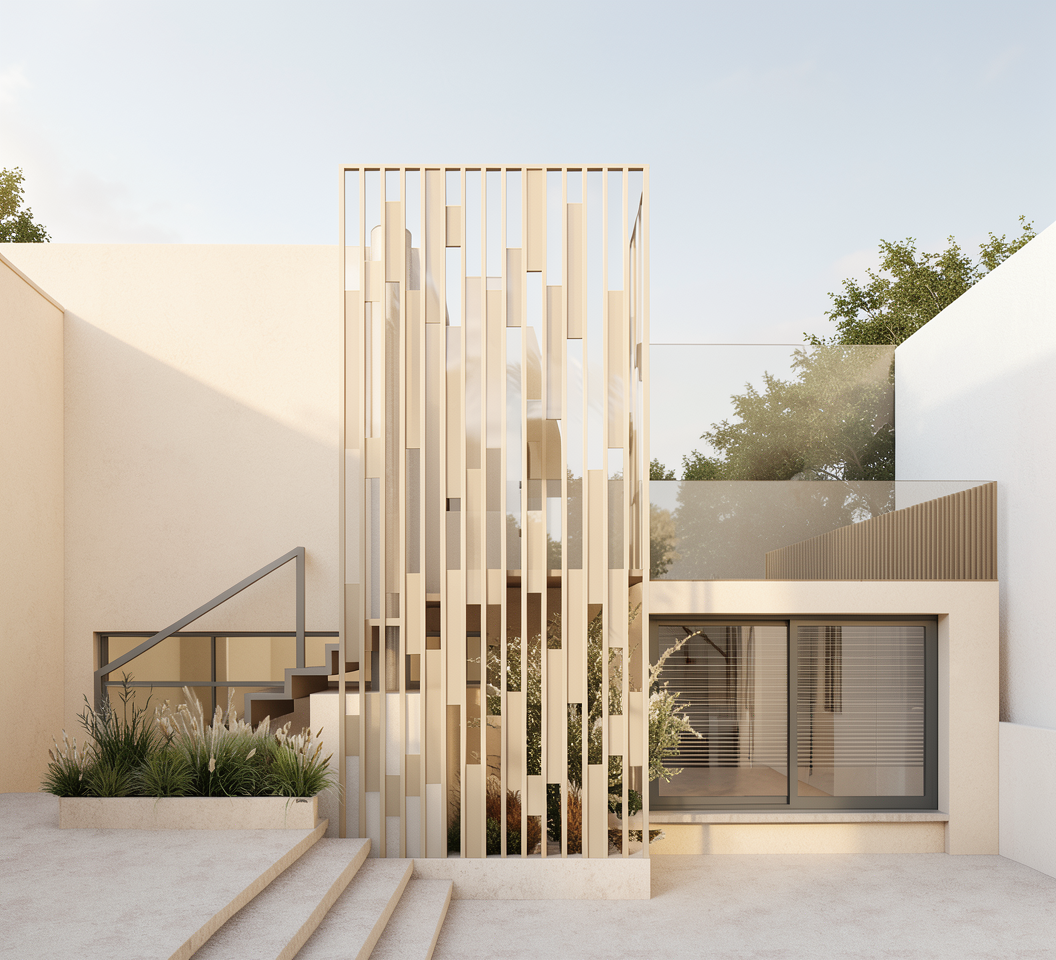 modern scandinavian chic exterior style soft light gray siding cedar wood vertical planking matte black metal roofing minimalist design