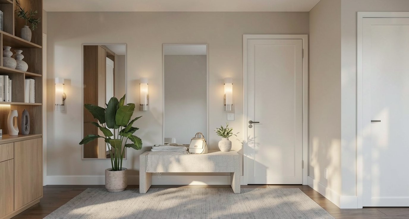 transform the provided elevation into a hyper realistic interior photograph that is indistinguishable from a real professionally shot interior design photograph this must read as a real space captured by a camera not a rendering not a visualization not architectural cg not concept art and not an illustration geometry lock non negotiable preserve the exact original geometry layout proportions ceiling details wall depths panel divisions openings doors cabinetry locations millwork dimensions built ins and circulation paths with zero architectural changes nothing may move scale simplify or be reinterpreted geometry must remain absolutely unchanged camera derivation critical derive the camera position height angle and framing strictly from the uploaded elevation eye level interior photography centered or naturally balanced composition 24 35mm interior lens feel no dramatic angles no stylized framing do not reuse or approximate camera framing from any previous image remove all drawing artifacts completely remove all linework cad edges drafting outlines diagrammatic shapes sketch artifacts nothing may appear outlined flat schematic or illustrative the elevation must be visually reinterpreted as a finished real interior photograph material realism rules wood if present smooth solid plank material extremely subtle restrained grain matte or soft satin finish only no graphic patterns no decorative striping no visual noise wood must absorb light gently never glossy or sharp fabric upholstery if present soft compression subtle seams gentle shadowing natural fabric texture no flat color blocks stone slabs if present light natural veining soft organic variation low contrast no symmetry no bold or busy patterns stone must feel heavy and grounded walls fine surface texture slight tonal variation never flat paint edge construction realism all edges corners joints and transitions must be softly broken and physically realistic no razor sharp corners no cgi perfect edges slight construction tolerances only everything must read as fabricated installed and dimensional lighting photographic behavior lighting must behave like real high end interior photography natural daylight only unless otherwise specified realistic light bounce gentle shadow falloff uneven exposure distribution subtle brightness variation across surfaces avoid studio lighting uniform illumination over clean exposure global illumination look slight softness is preferred over sharpness camera image imperfections very important introduce subtle photographic characteristics gentle lens softness micro exposure variation natural contrast roll off mild atmospheric depth primary plane sharp background slightly softer the image must feel captured not generated absolute constraints no creative interpretation no stylization no exaggeration no added or removed elements any deviation from the original elevation geometry or intent is unacceptable negative prompt always include architectural rendering 3d visualization cgi unreal engine octane vray sketchup look flat textures graphic lines outlined edges over sharpened studio lighting concept art illustration ai look plastic materials glossy wood high contrast grain perfect symmetry keep the design and everything in the picture as it is please dont change design in the image