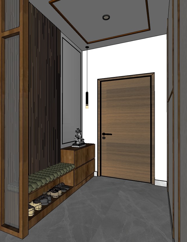 create a realistic interior render showcasing the existing furniture and flooring with their original textures preserved exactly as provided integrate cove lighting within the ceiling to produce a soft ambient glow that enhances the overall atmosphere ensure the ceiling cove lights are realistically illuminated casting appropriate shadows and reflections on surrounding surfaces maintain accurate material properties for all elements including fabric wood metal and flooring finishes to achieve a high fidelity photorealistic result adjust light intensity and color temperature for a balanced warm and natural lighting composition without overexposure