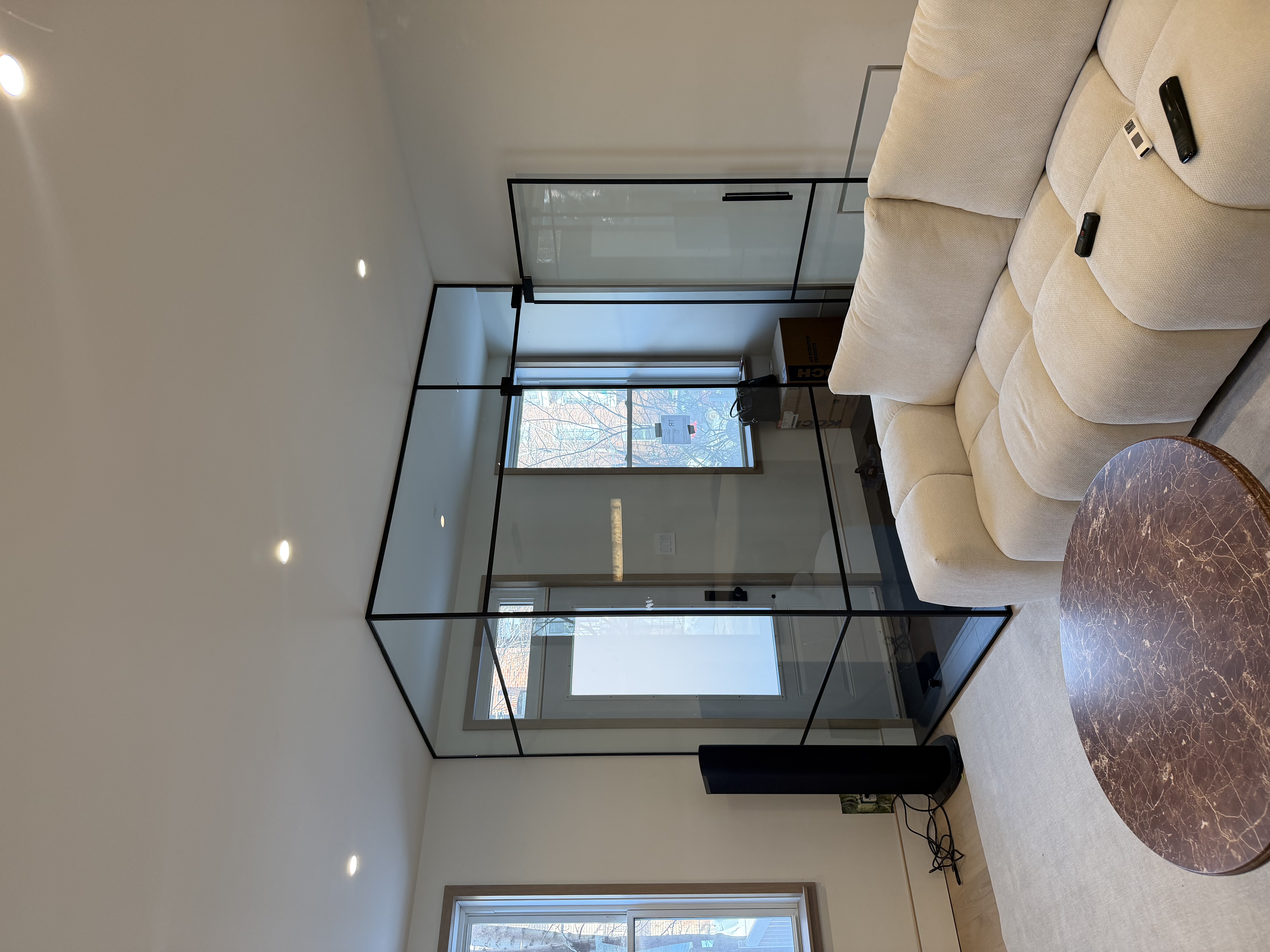 keep everything the same dont change anything but paint the door and window above dark blacquered blue