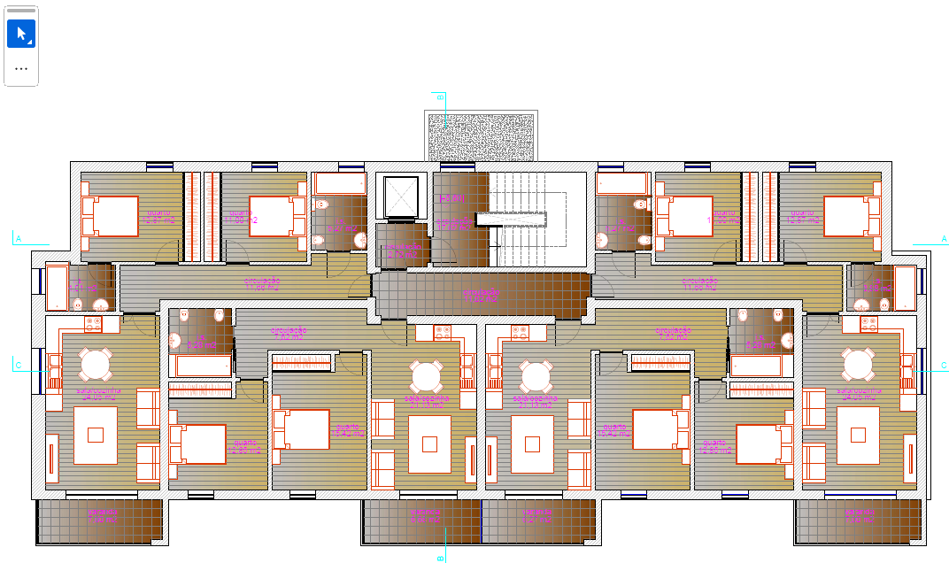 modernist interior shot a realistic 3d architectural visualization of a modern residential building based on the provided floor plan the building features multiple symmetrical apartments with open plan living and dining areas modern kitchens and bedrooms with en suite bathrooms each apartment includes a balcony or terrace as shown in the layout use realistic proportions and accurate scaling based on the plan the overall architectural style should be contemporary with clean lines light colored fa ades white and beige tones and large glass windows the roof should be flat with minimalist details and balconies should have glass or metal railings render the interior with wood flooring and neutral walls as indicated in the plan highlighting the flow between rooms include warm interior lighting and natural daylight entering through the windows the exterior environment should feature a paved entrance minimal landscaping and soft daylight to emphasize realism ensure that the general layout walls and proportions respect the structure and alignment from the architectural drawing architecture