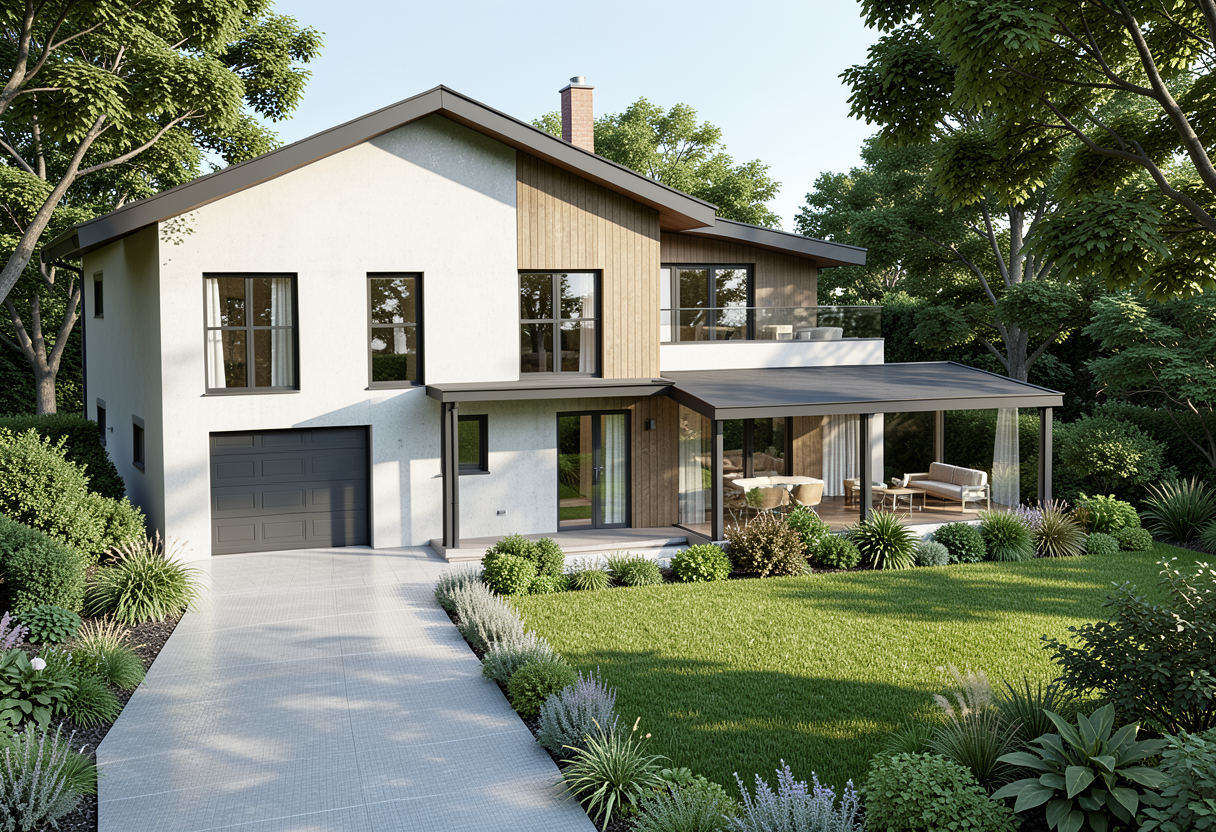sunset portugal ericeira landscape moor natural grass garden small swiming pool 4x8m focus for interior no change photo realistic