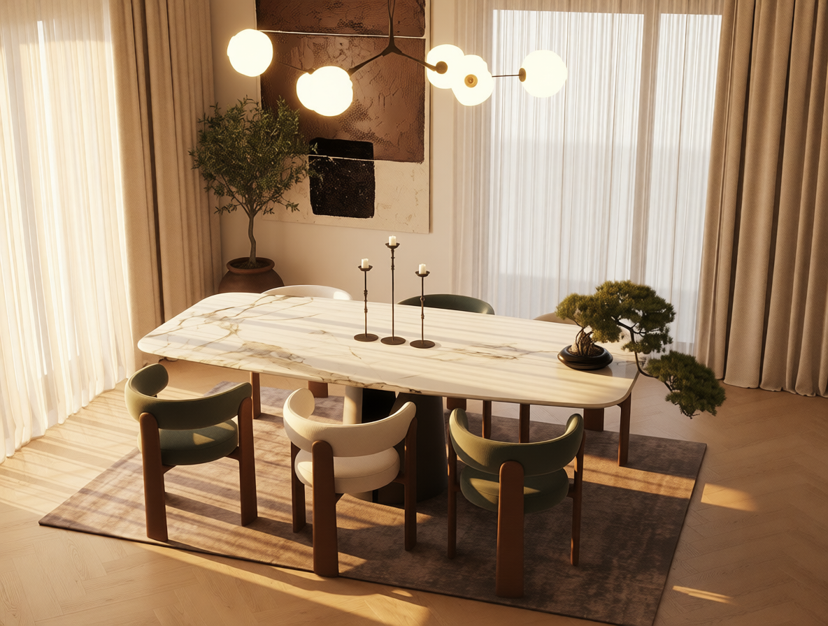 place this table in a modern home setting concrete floors