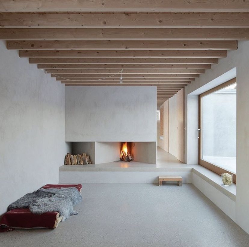 minimalism interior shot living room with one minimal industrial style fireplace architecture