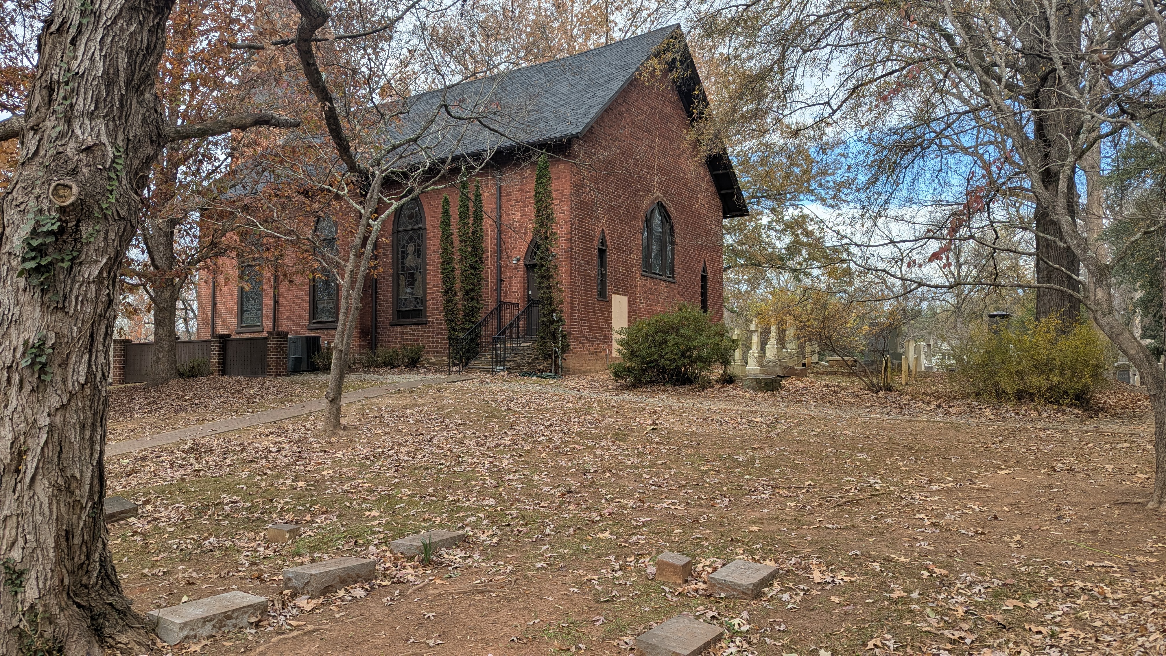 create an accurate scaled 3d architectural model of the brick church building shown in this image focus only on the church structure ignore trees gravestones shrubs and surrounding landscape model the building as a clean architectural asset suitable for import into sketchup key modeling requirements traditional red brick church with steep gabled roof rectangular footprint with a smaller rear extension visible on the left tall gothic style arched windows with recessed frames main entry stair with black metal railing simple asphalt shingle roof with correct pitch exposed eaves and visible fascia exterior brick texture mapped cleanly and proportionally window glass slightly reflective but transparent basic door geometry included maintain real world proportions and scale accuracy deliverable specifications clean geometry no unnecessary mesh noise separate grouped components walls roof windows stairs railings properly aligned axes real world scale in feet export as sketchup compatible skp or clean obj do not stylize or modernize preserve the historic character exactly as shown