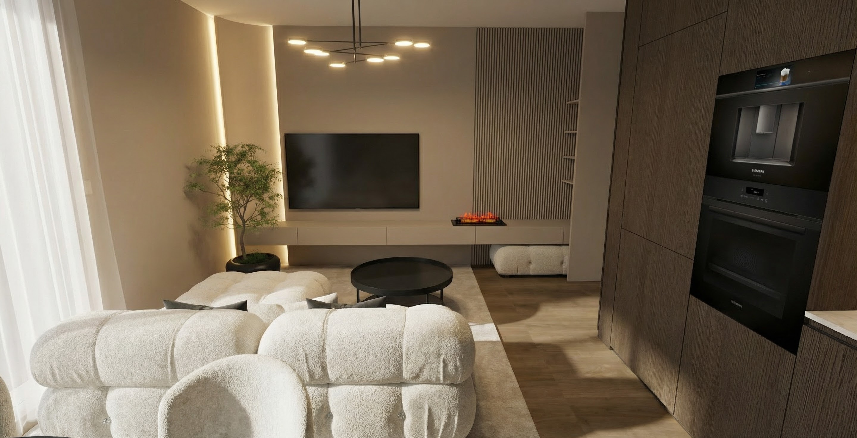 turn the ceiling lamp on 35000k the drawer under the tv and the lamellas the same color as the wall behind add led light shining from behind the gap on wall on the left delete led light on the wall behind the tv