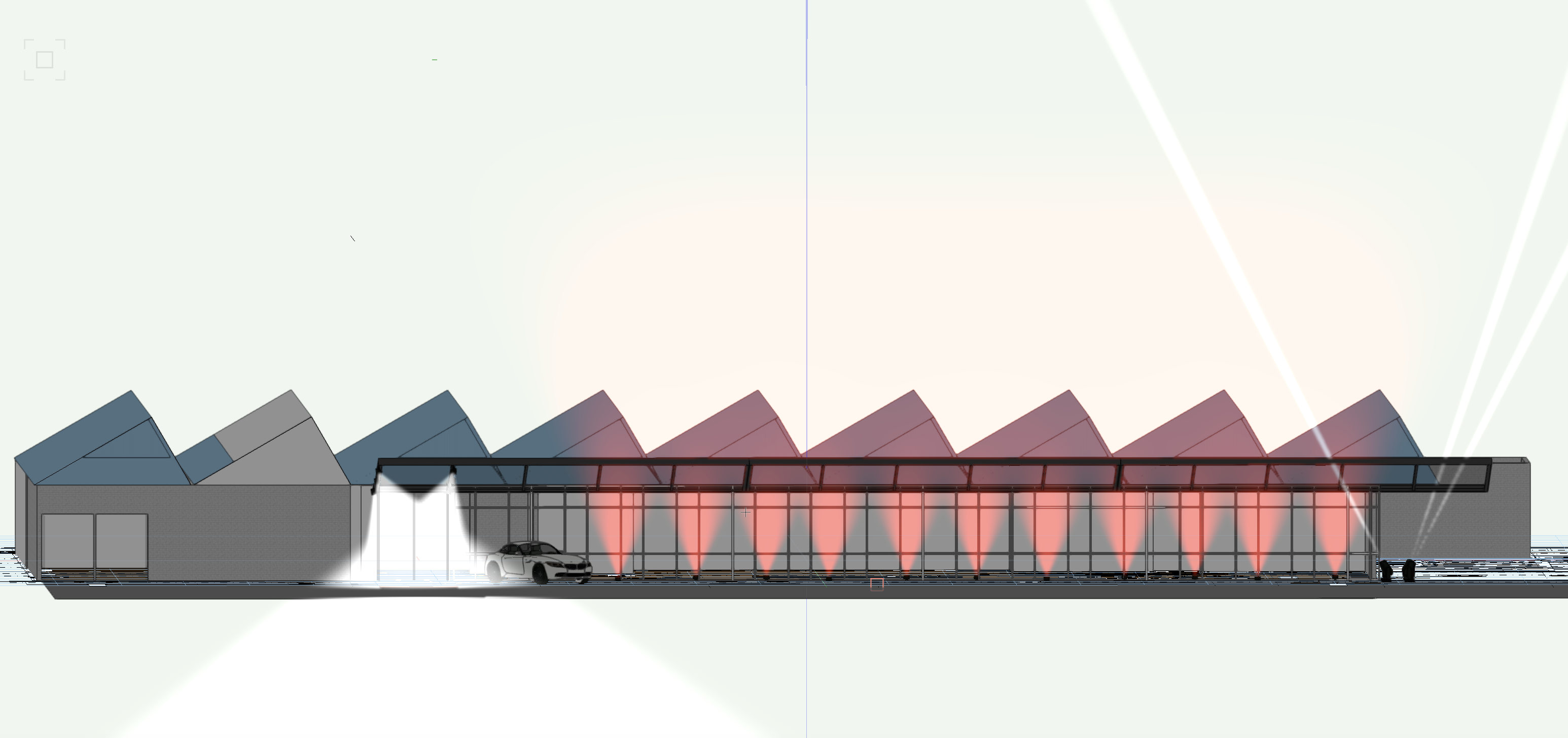make this a oscar red carpet scene use the red lights in front of the house to give a red shine to the glass wall use same color for the roof make the skybeam lights on the right visible with white beams shining into the night make the car into an aston martin use a red carpet in front of the door and put some people on it use some above lights on the red carpet