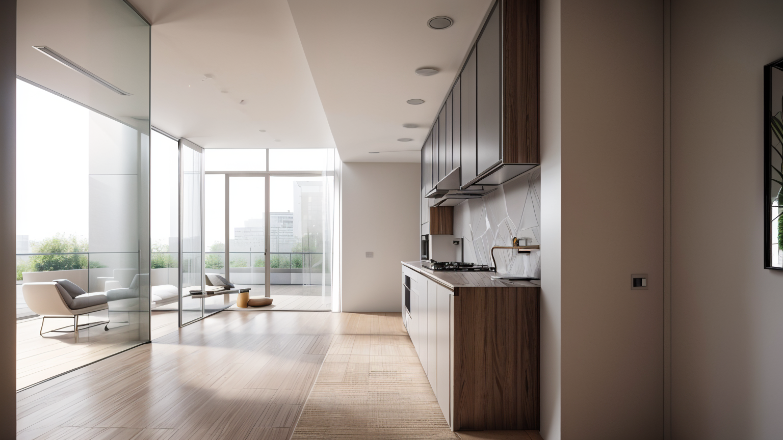 modernist exterior shot modern luxury house with a contemporary design featuring three peaked roofs with deep gray tiles the large glass windows emit a warm inviting golden glow from the interior the exterior walls are painted in a sleek neutral gray accented with light colored stone at the entrance two vehicles one dark gray and one silver are parked the driveway is composed of smooth gray bricks leading to a spacious courtyard in the foreground soft ornamental grasses of beige and green sway gently the sky is a serene light blue with scattered fluffy white clouds evoking a tranquil evening atmosphere you can also add wood cladding but do not overdo it architecture