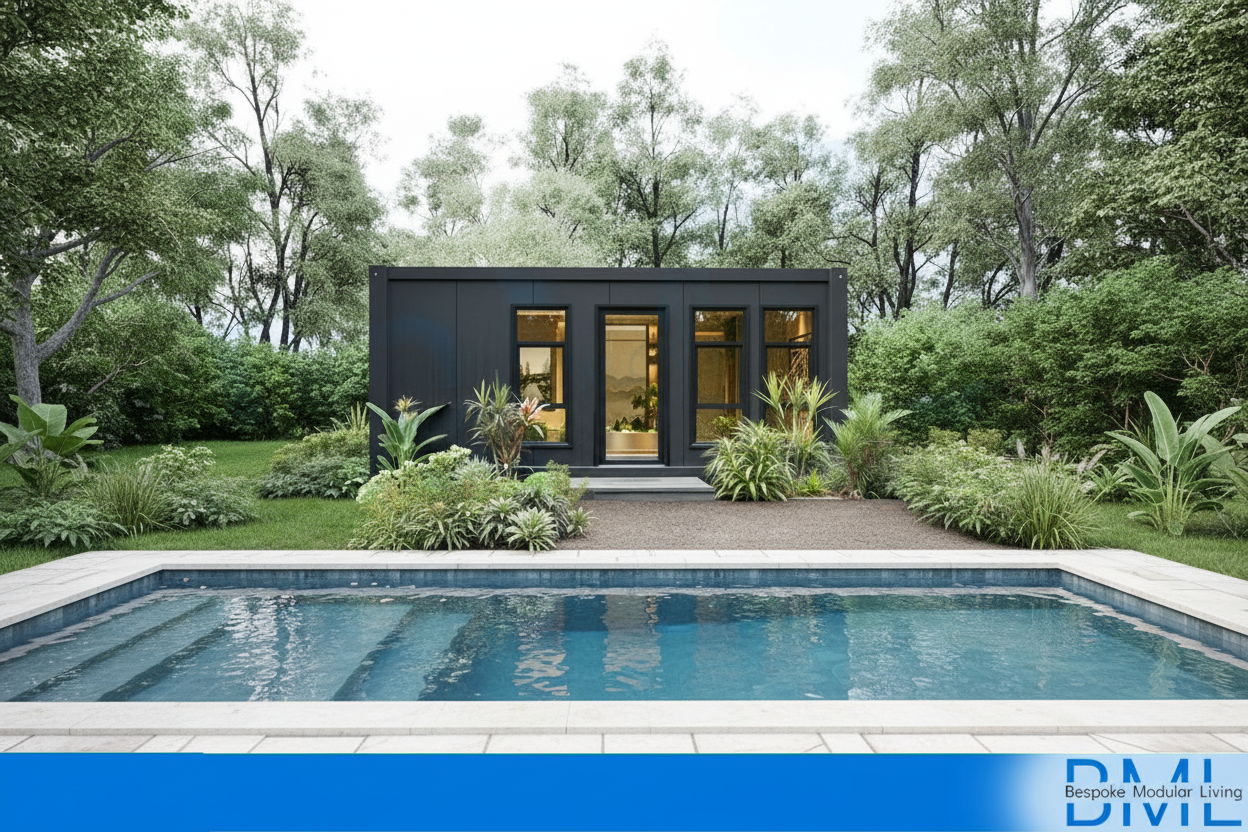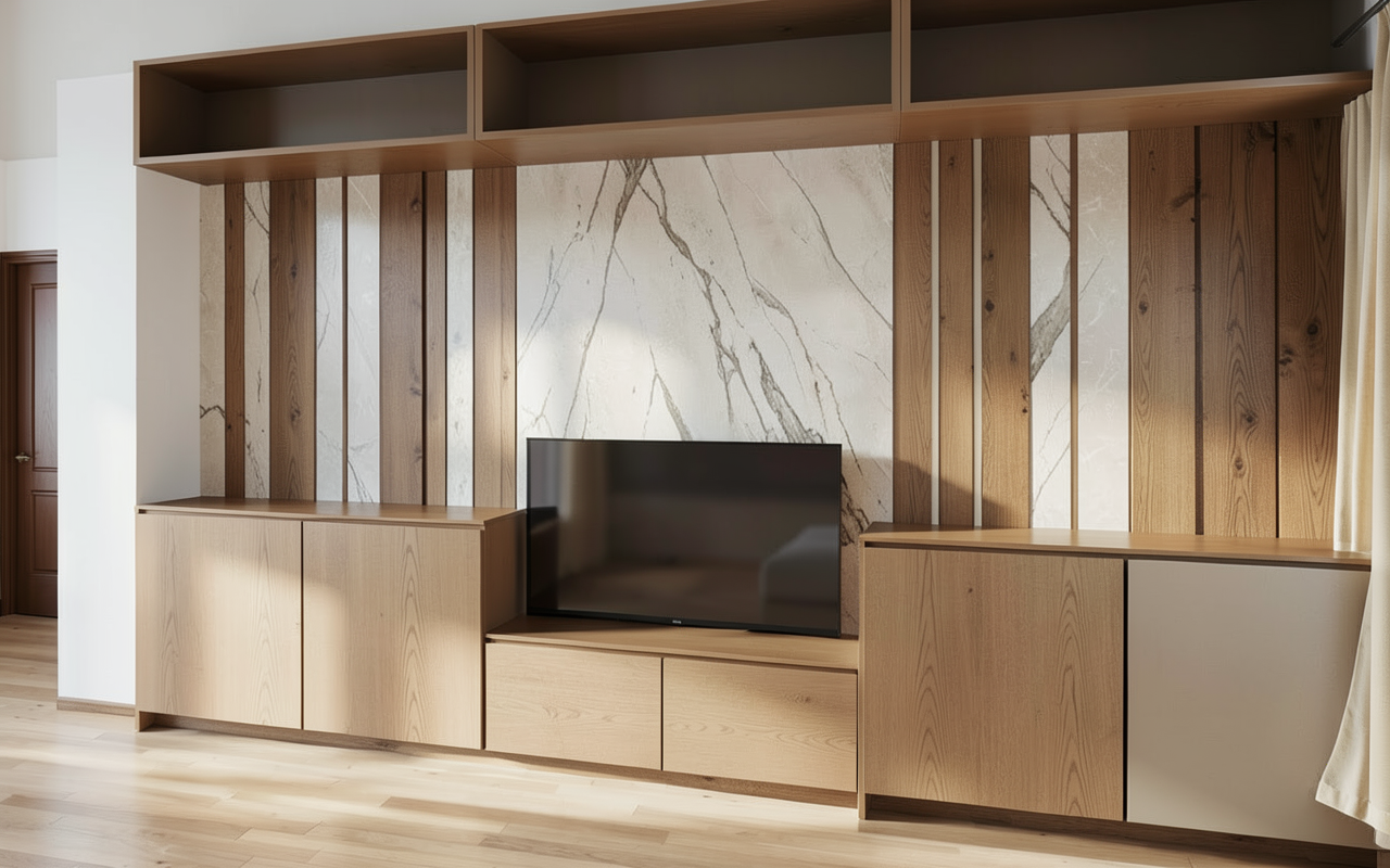 i m looking straight north at the new backyard ramada maintain this view construct a new free standing ramada with 4 wood post and a wood beam painted dec750 bison beige rl 649 wood fascia painted det695 grange hall rl 992 the roof will be concrete barrel shaped roof tiles desert tan the framed wall in the backdrop has adhered cultured stone veneer and 72 long low profile fireplace and a 54 flatscreen tv monitor above to watch american football sports the existing 25 x25 concrete slab is in the rear yard toward the north end to the south there is a 5 walkway of pool deck between the ramada and existing 6 x6 square spa and then a long rectangular pool extending south and out of the picture the pool and spa are centered on the new ramada and the pool is the same width as the ramada there is approximately 12 of pool deck between the pool and spa the pool and spa height are at the level of the walk there is an existing 6 high cmu wall approximately 20 north of the new ramada the cmu wall is painted de6214 pigeon gray rl 570 there is very short green grass between the ramada slab and wall with a 4 wide landscape rock path along the base of the cmu wall place a hip style roof on the ramada on 2 columns on the front connect the ramada to the house with a treliis like the one already on the house use the main house image from the photo make the wall under the ramada 8 long place a 2 way see through fireplace under the tv