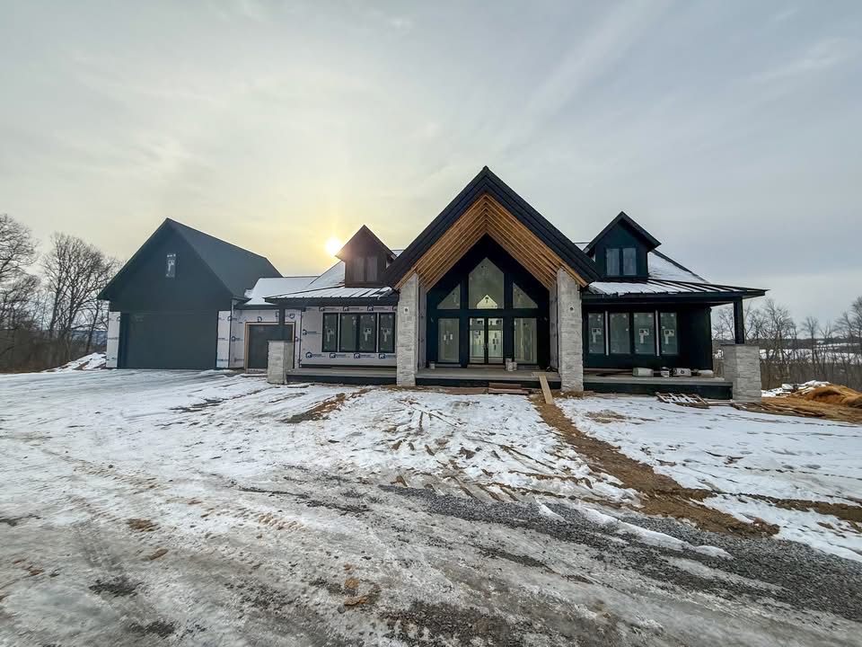 change the season to summer level the land in the picture change the roof and siding to vertical black steel