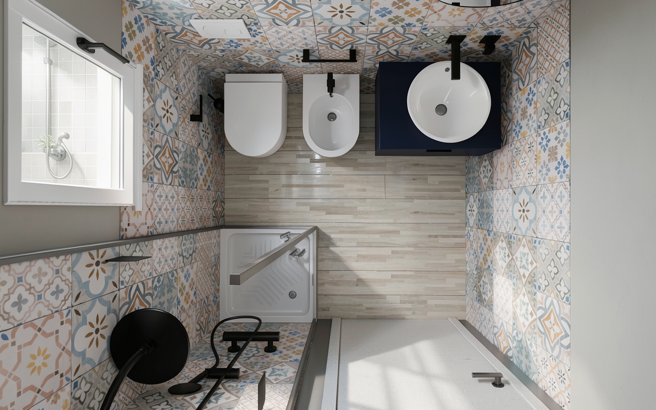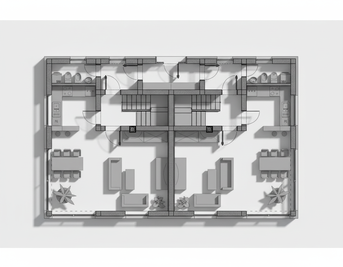 convert this floor plan into a realistic isometric 3d view of a full house show the space from an elevated angle with furniture walls and details visible hazme una alzado planta y perfil use the same furniture as shows on the plan do not change the orientation of the floorplan