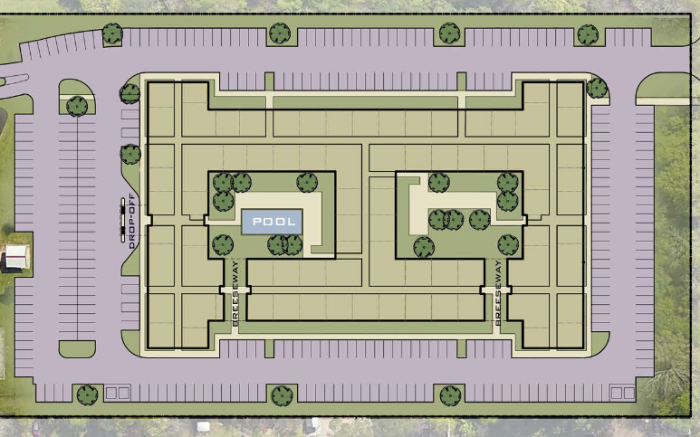 generate a high quality architectural rendering from a 2d site plan of a multi building apartment complex designed for senior housing in austin texas important maintain the exact building footprints site geometry and layout from the provided 2d plan do not reinterpret or redesign the layout only translate it into a 3d rendering with enhanced architectural detail materials and environment the development should reflect a blend of modern and garden style apartment design creating a warm inviting and human scaled environment appropriate for senior living site layout low rise 2 3 story buildings arranged around landscaped courtyards and walking paths emphasis on accessibility clear circulation and community spaces include covered drop off zones and clearly defined building entries surface parking integrated into the site at approximately 1 1 5 spaces per unit with shaded parking structures carports or trees accessibility compliance fully ada compliant design and fair housing accessibility considerations wide smooth walking paths with minimal slopes and no abrupt grade changes accessible routes connecting parking units and amenities ramps integrated naturally into the design no institutional feel architectural style hybrid of modern garden style clean lines softened with residential character material palette fiber cement siding light stucco stone accents and warm wood details sloped roofs with modest overhangs avoid flat only roofs senior friendly design features frequent seating areas along walking paths shaded rest areas pergolas and breezeways community garden and passive outdoor gathering spaces clear visible signage and welcoming building entrances landscape environment austin context native texas landscaping live oaks ornamental grasses drought tolerant planting incorporate limestone elements typical of central texas design for heat mitigation with shade and airflow lighting mood late afternoon golden hour lighting warm tones soft shadows inviting and calm atmosphere rendering style photorealistic with high detail slightly stylized for architectural presentation not overly conceptual include people senior residents walking sitting interacting to show scale and livability camera views primary angled aerial perspective showing full site layout and relationships secondary pedestrian level view highlighting entries landscaping and accessibility features overall feel comfortable safe and community oriented high quality but not luxury driven emphasize dignity independence and ease of living for senior residents