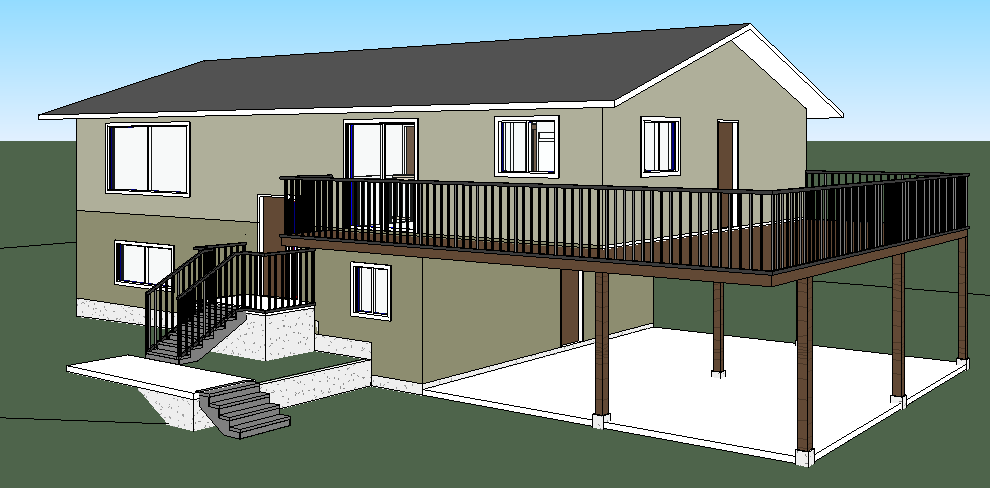 add natural lighting make look realistic add surrounding trees and nice landscaping the bottom floor is dark green stucco the upper floor is light green stucco