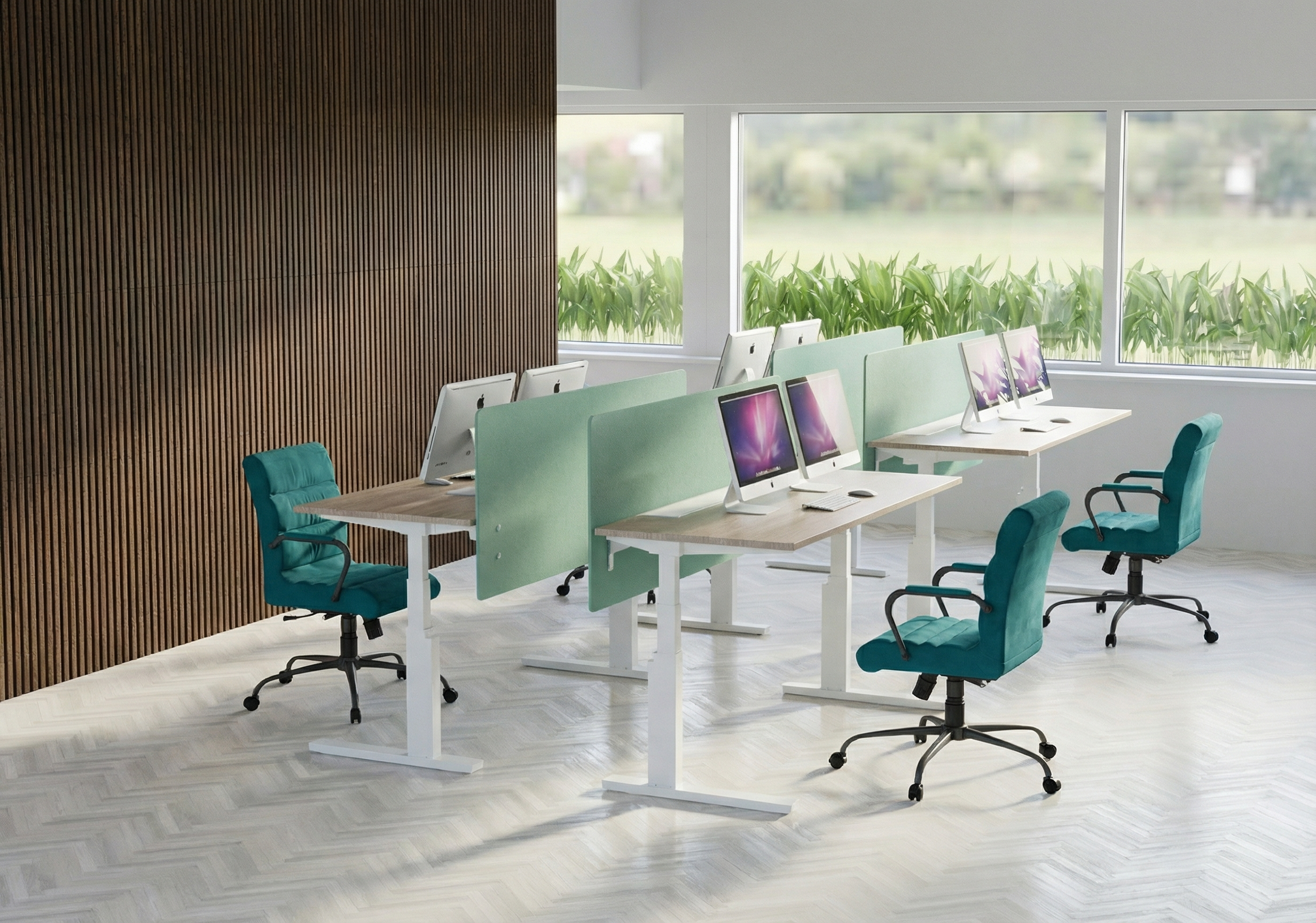render a photorealistic 3d bird s eye view of this villas using white plaster for the walls brown masonry tiles on the roof brown gutters brown windows frames exterior concrete pavement green hadges green garden whit some tree and vegetation don t add path in the garden at the moment the central avenue is made in asphalt