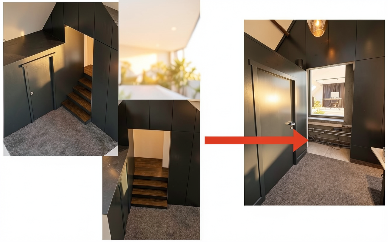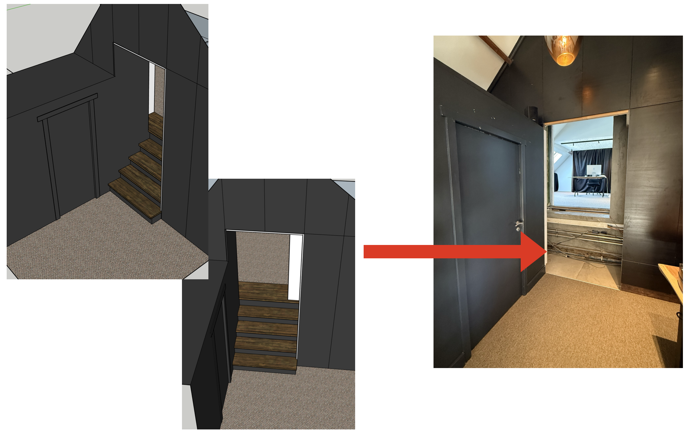 visualize the sketched staircase left in the photo right