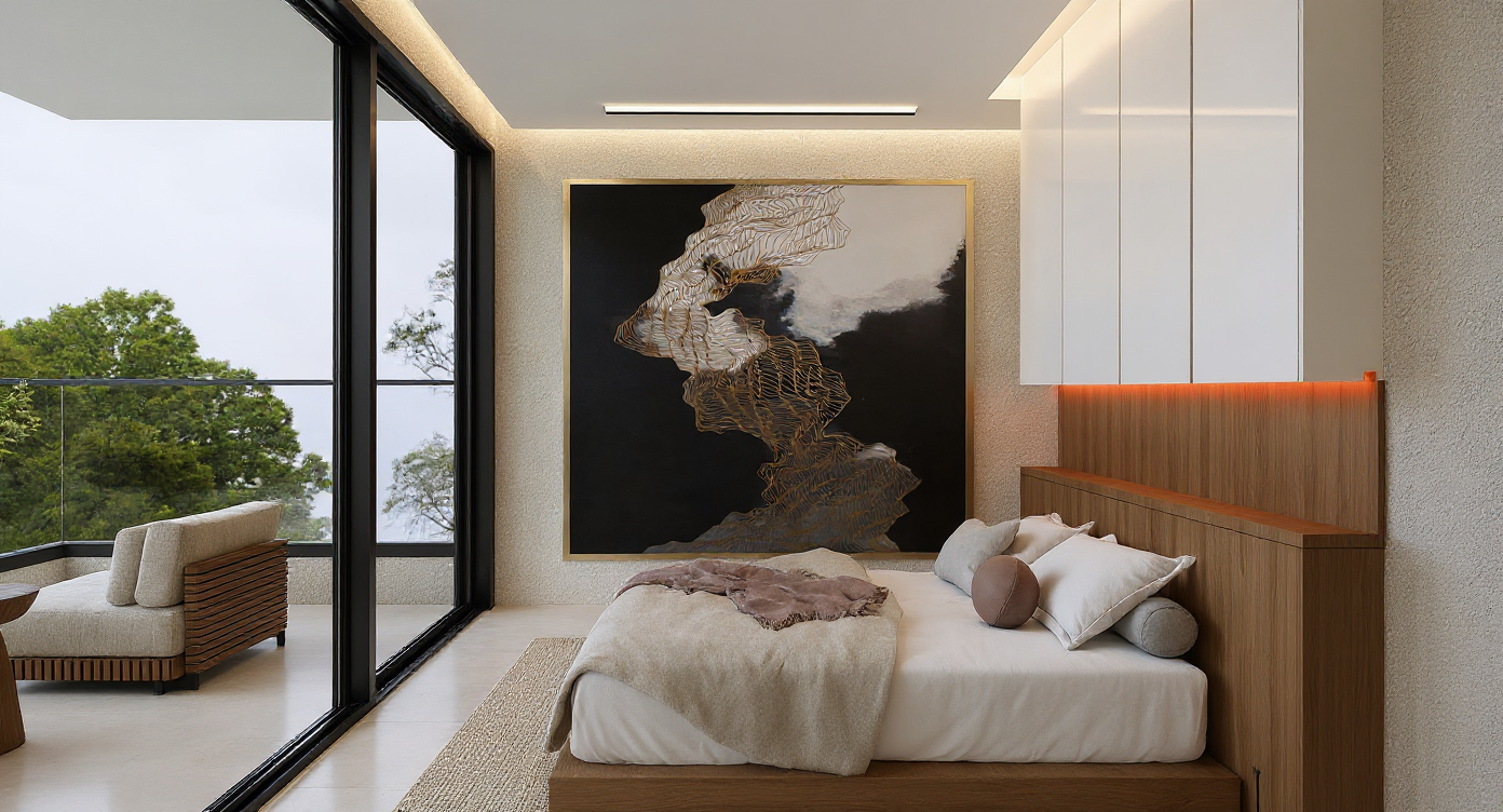 render this to a realistic quality using material pallets such as concrete wood stone all that any cyan colors should be rendered as a concrete based planters that sit staggered on the main staircase they are made from concrete and shouldnt be blue any red should be a darker staggered stone texture the yellow should be the wooden facade panels the orange is roof underneath a large cantilever add rigid simple lights underneath that illuminate the stairs the dark blue should be rendered as sky do not add objects just render the dark blue color as the sky and sky only the green should be rendered as staggered stone walls in the background render the plaza structure as wood too and add lighting behind it so the plaza space does not look so dark