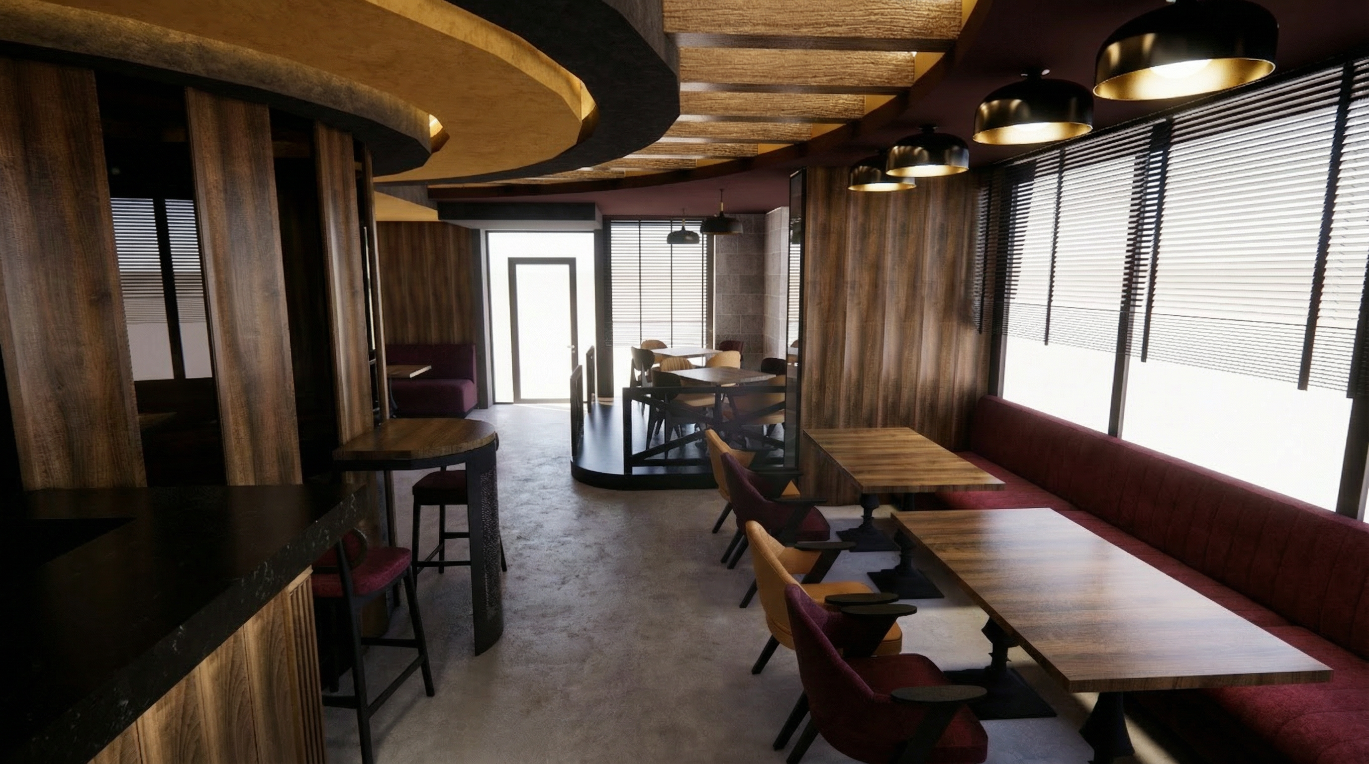 ultra realistic architectural render of a modern luxury kitchen with a monolithic black marble island as the focal point soft golden hour sunlight streaming through large black framed floor to ceiling windows casting long warm shadows across the stone floor highly detailed materials polished black marble with subtle white veining and realistic reflectivity rich dark walnut wood cabinetry with natural grain variation matte taupe paneling warm off white plaster walls with soft texture add realistic imperfections micro scratches and natural variation cinematic lighting with global illumination soft ambient bounce light warm color grading slight atmospheric haze photorealistic 8k shallow depth of field focus on island high end editorial interior photography style 1 fix your windows biggest problem rn right now they re blown out flat add soft exterior autumn forest visible through windows balanced exposure visible outdoor detail no overexposed windows 2 fix your marble second biggest issue it looks too flat cg right now add physically accurate reflections subtle gloss variation ray traced reflections heavy realistic marble depth and contrast in veining 3 push the mood this is what your references have add warm cozy atmosphere soft shadows natural light falloff slightly desaturated tones earthy palette 4 camera polish this matters more than you think add low eye level perspective 35mm lens architectural photography framing no flat lighting no overexposed windows no plastic textures no overly glossy surfaces no harsh contrast no low detail textures no artificial look no noise artifacts inspired by warm luxury cabin interiors with floor to ceiling windows overlooking an autumn forest soft golden natural light cozy and inviting atmosphere