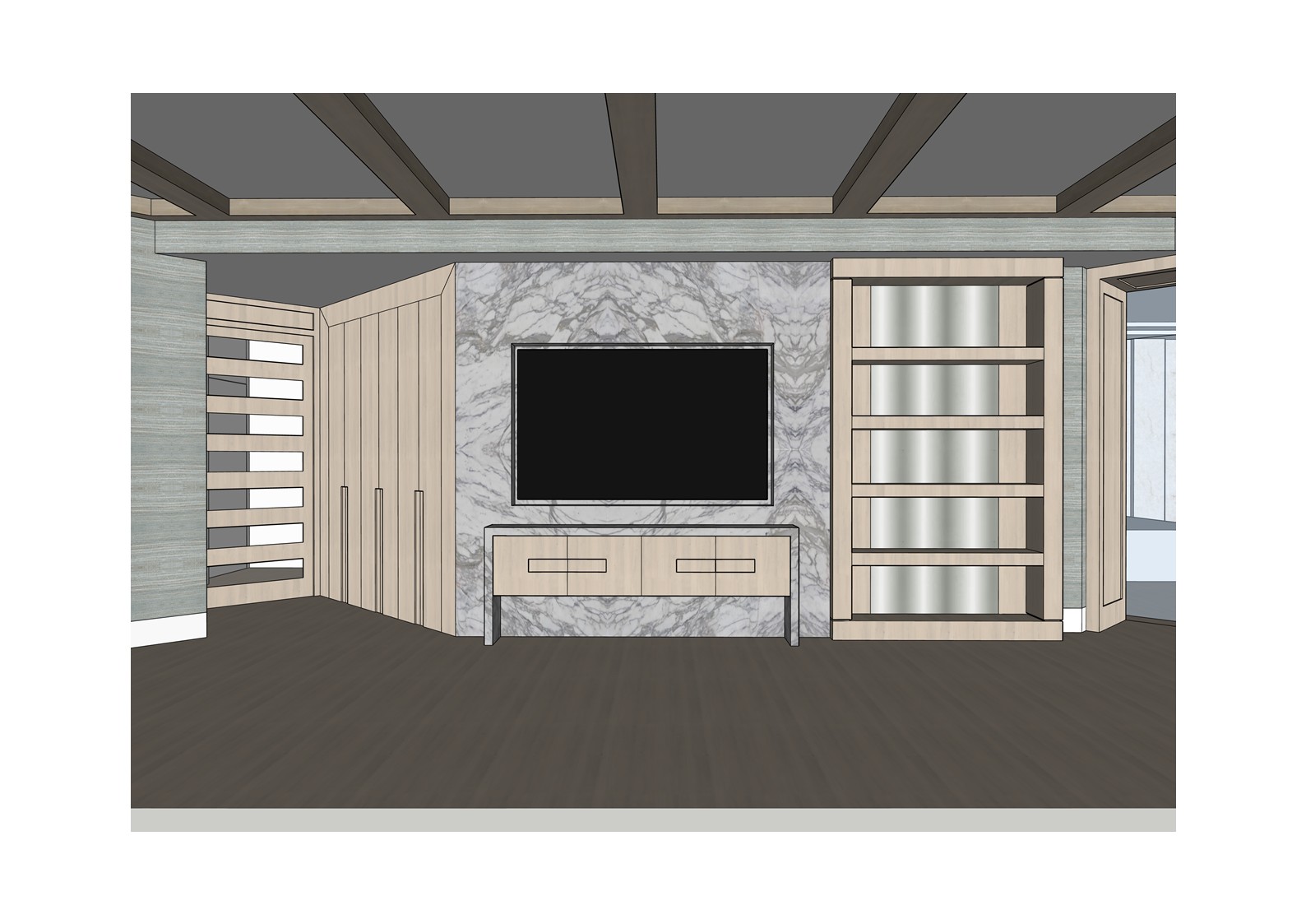 transform the provided elevation into a hyper realistic interior photograph that is indistinguishable from a real professionally shot interior design photograph this must read as a real space captured by a camera not a rendering not a visualization not architectural cg not concept art and not an illustration geometry lock non negotiable preserve the exact original geometry layout proportions ceiling details wall depths panel divisions openings doors cabinetry locations millwork dimensions built ins and circulation paths with zero architectural changes nothing may move scale simplify or be reinterpreted geometry must remain absolutely unchanged camera derivation critical derive the camera position height angle and framing strictly from the uploaded elevation eye level interior photography centered or naturally balanced composition 24 35mm interior lens feel no dramatic angles no stylized framing do not reuse or approximate camera framing from any previous image remove all drawing artifacts completely remove all linework cad edges drafting outlines diagrammatic shapes sketch artifacts nothing may appear outlined flat schematic or illustrative the elevation must be visually reinterpreted as a finished real interior photograph material realism rules wood if present smooth solid plank material extremely subtle restrained grain matte or soft satin finish only no graphic patterns no decorative striping no visual noise wood must absorb light gently never glossy or sharp fabric upholstery if present soft compression subtle seams gentle shadowing natural fabric texture no flat color blocks stone slabs if present light natural veining soft organic variation low contrast no symmetry no bold or busy patterns stone must feel heavy and grounded walls fine surface texture slight tonal variation never flat paint edge construction realism all edges corners joints and transitions must be softly broken and physically realistic no razor sharp corners no cgi perfect edges slight construction tolerances only everything must read as fabricated installed and dimensional lighting photographic behavior lighting must behave like real high end interior photography natural daylight only unless otherwise specified realistic light bounce gentle shadow falloff uneven exposure distribution subtle brightness variation across surfaces avoid studio lighting uniform illumination over clean exposure global illumination look slight softness is preferred over sharpness camera image imperfections very important introduce subtle photographic characteristics gentle lens softness micro exposure variation natural contrast roll off mild atmospheric depth primary plane sharp background slightly softer the image must feel captured not generated absolute constraints no creative interpretation no stylization no exaggeration no added or removed elements any deviation from the original elevation geometry or intent is unacceptable negative prompt always include architectural rendering 3d visualization cgi unreal engine octane vray sketchup look flat textures graphic lines outlined edges over sharpened studio lighting concept art illustration ai look plastic materials glossy wood high contrast grain perfect symmetry keep design as shown in the picture keep the design as it is in image light cabinets are white and brown cabinets are white oak keep design in the image as it is including materials