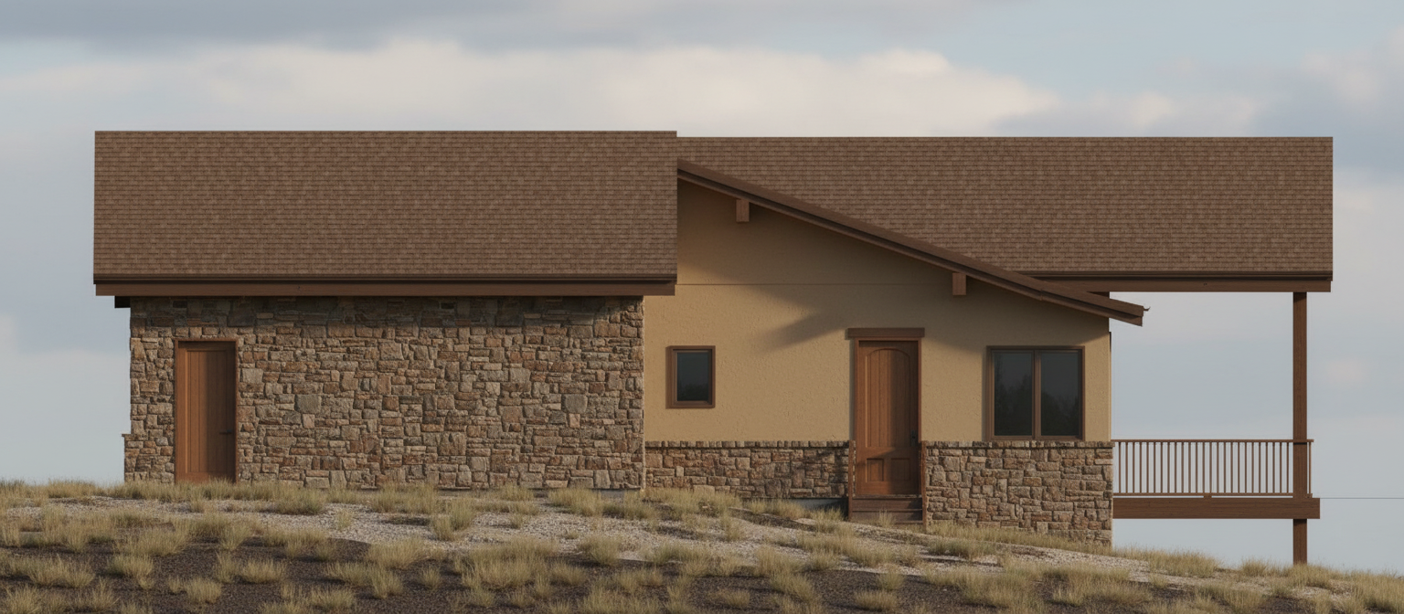 enhance the current materials and create a photorealistic atmospheric depth render the scene in hyper realistic architectural quality enriching the environment and highly detailed textures bright sunny day with balanced natural lighting clear visibility and soft shadows ideal for high end for architectural rendering the roof is dark brown gray