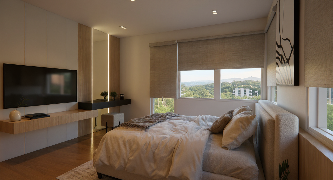 keep everything in the scene exactly the same geometry layout camera angle and materials add an interesting ceiling texture or mediterranean style wallpaper for decoration replace the white ceiling lights with beautiful mediterranean hanging lamps or chandeliers keep the lighting warm and natural and make the scene look realistic and high quality do not change or move anything else