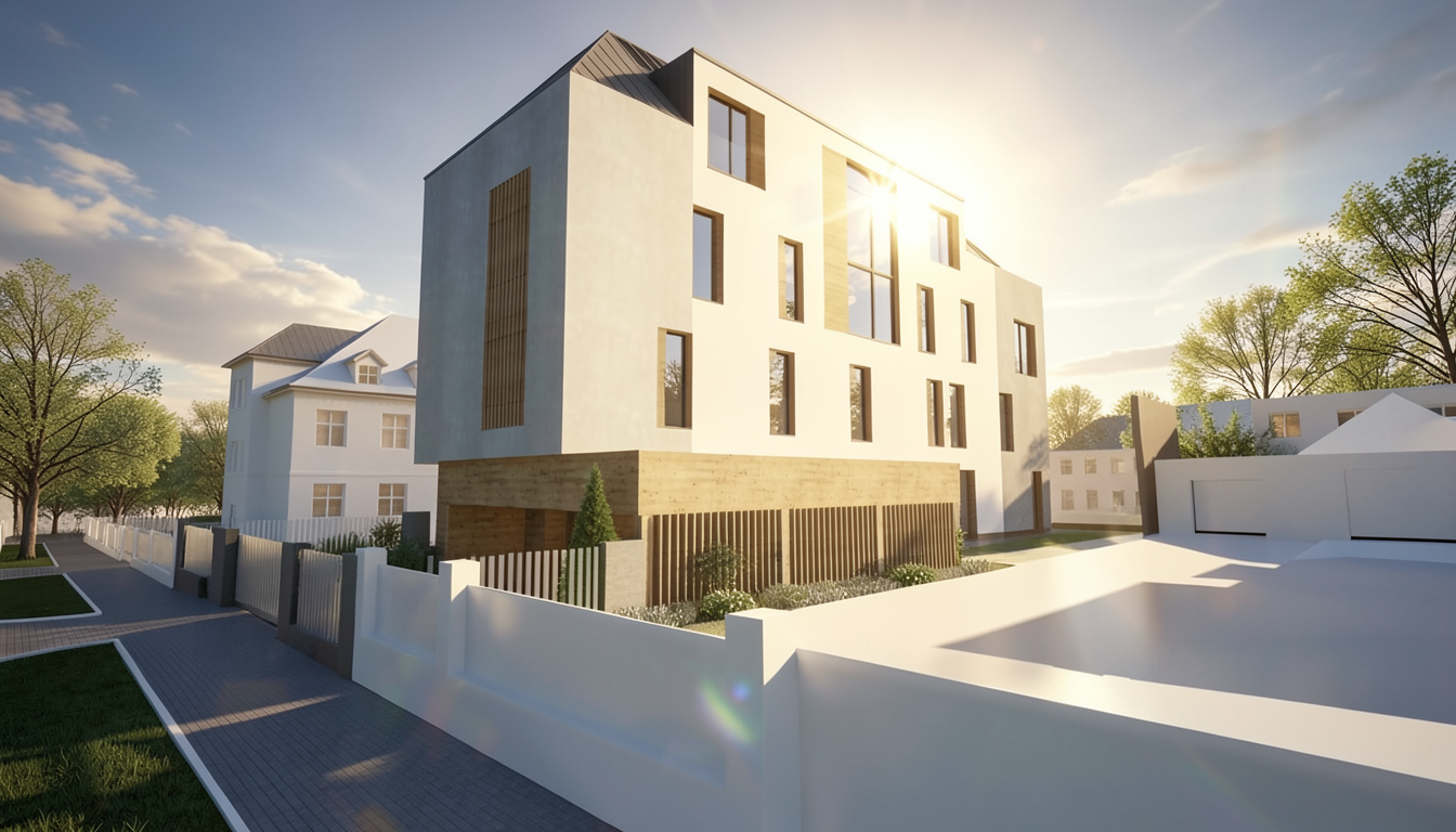 popraw niebo dodaj s once odbicia elewacja o wietlona dodaj drzewa li ciaste na horyzoncie popraw drewno na elewacji na japandi