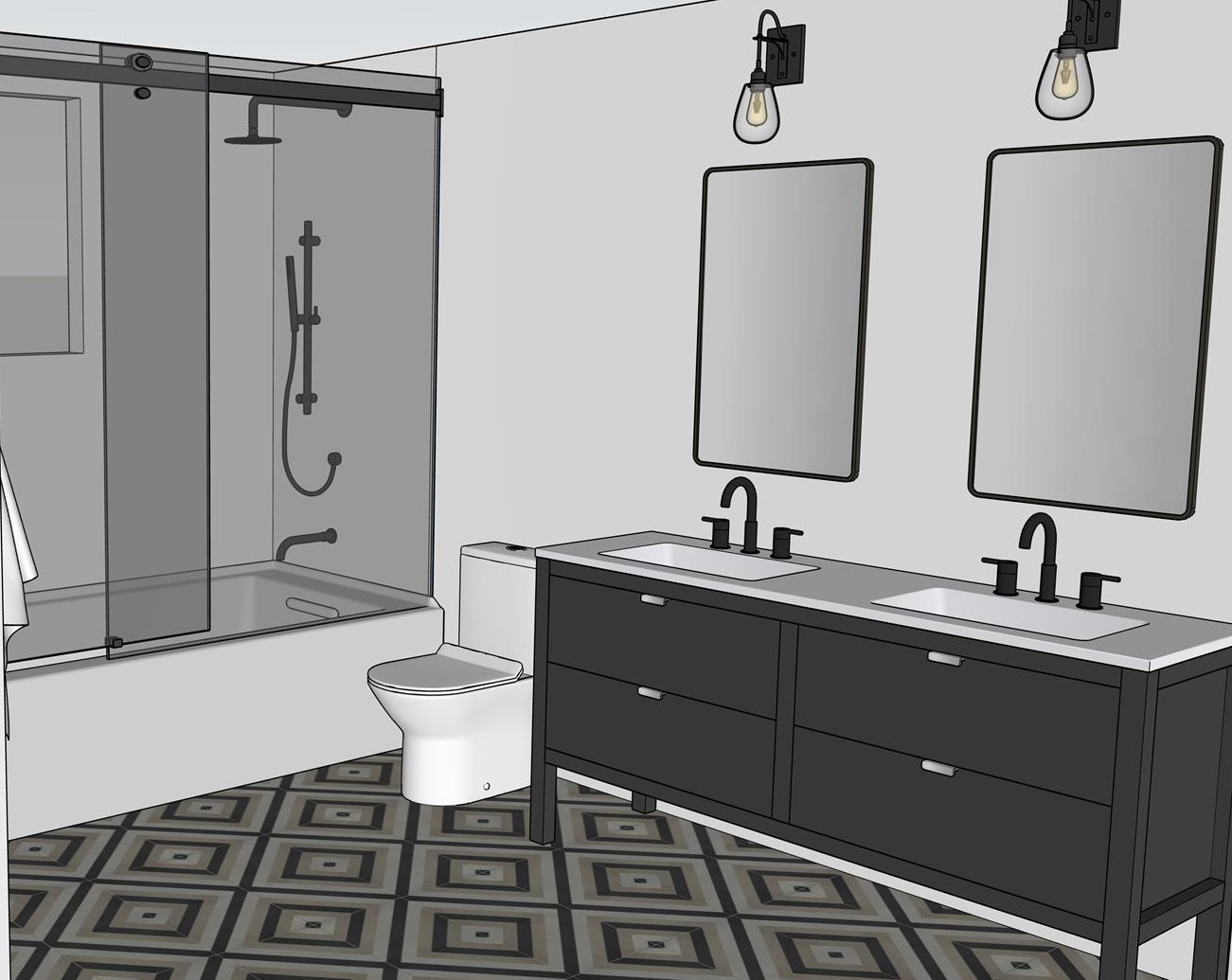 add horizontal white shiplap walls charcoal subway tile to tub walls
