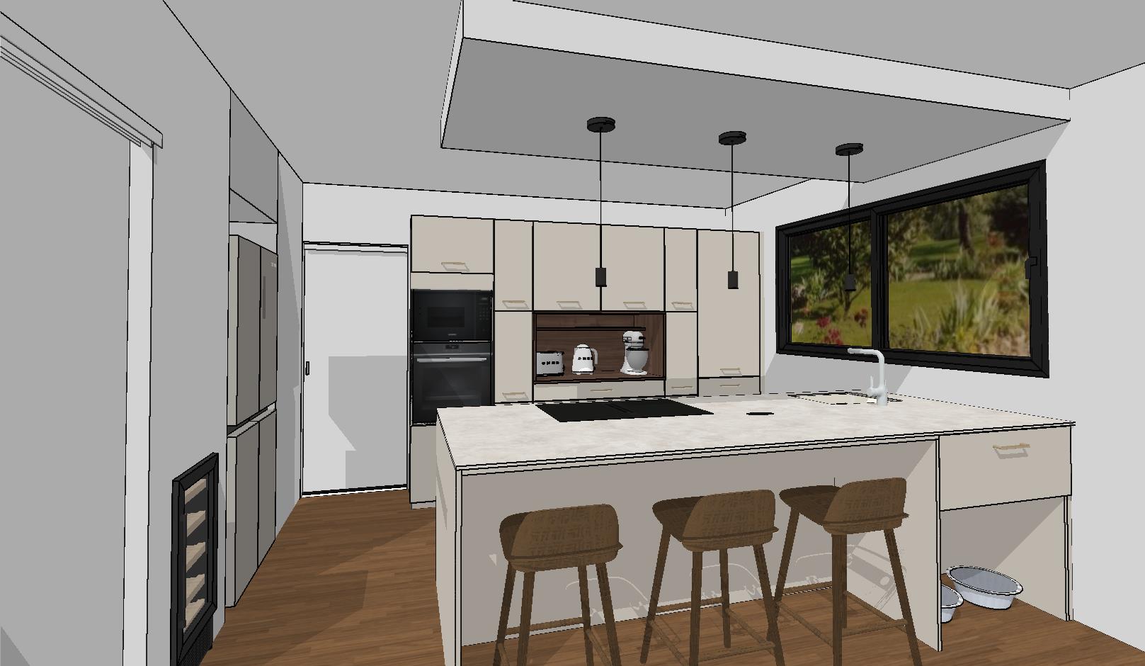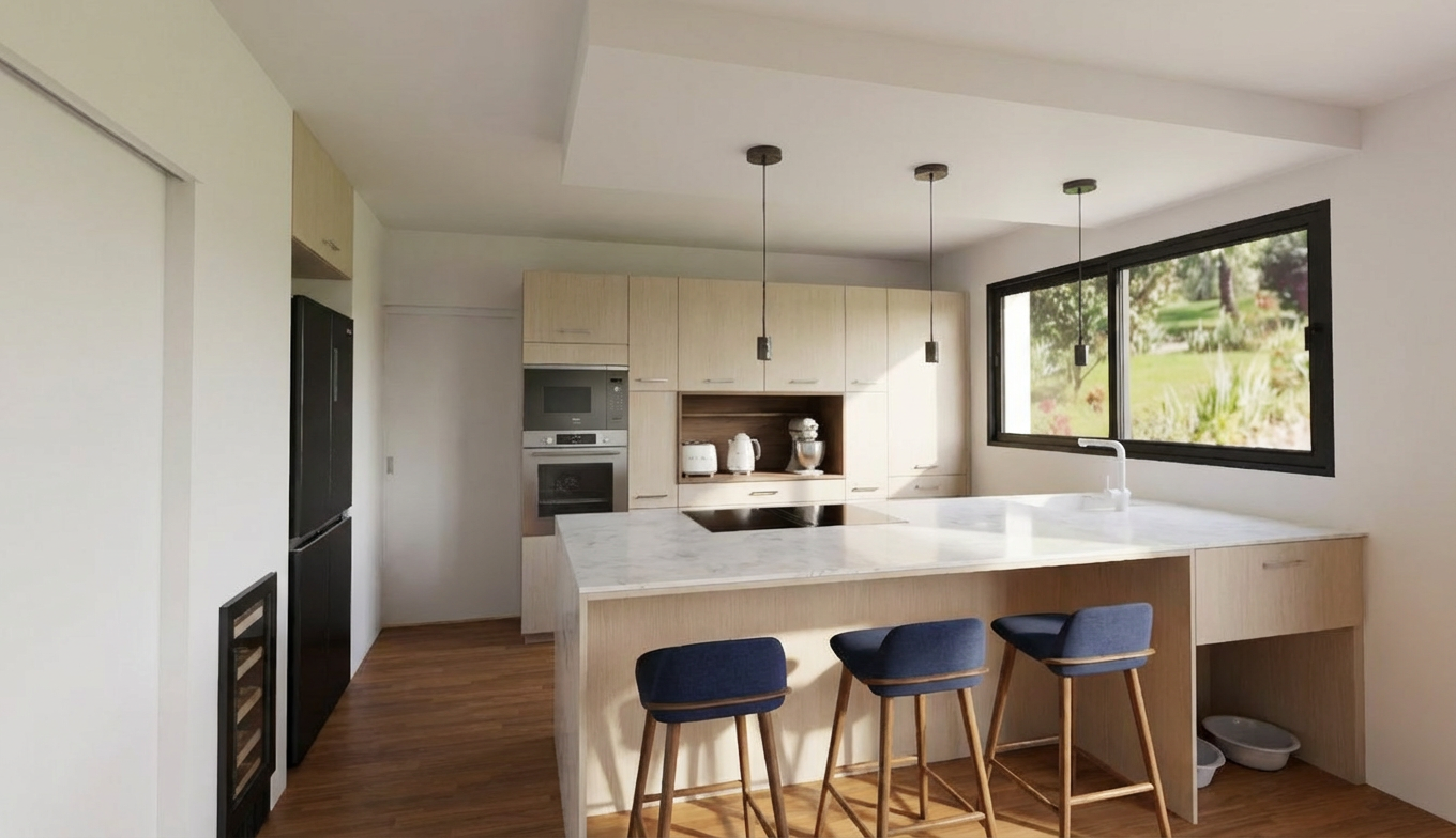 mets les tabourets en bleu marine ne modifie rien d autre le mur au dessus du frigo gauche est tout blanc pas de placard ni poign e ne modifie pas la texture ni la couleur des portes de placard
