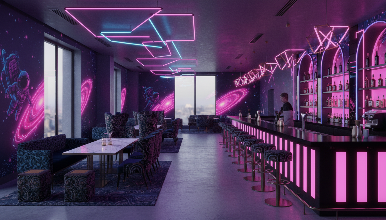 4 people per table eating white acoustic tile ceiling with lights