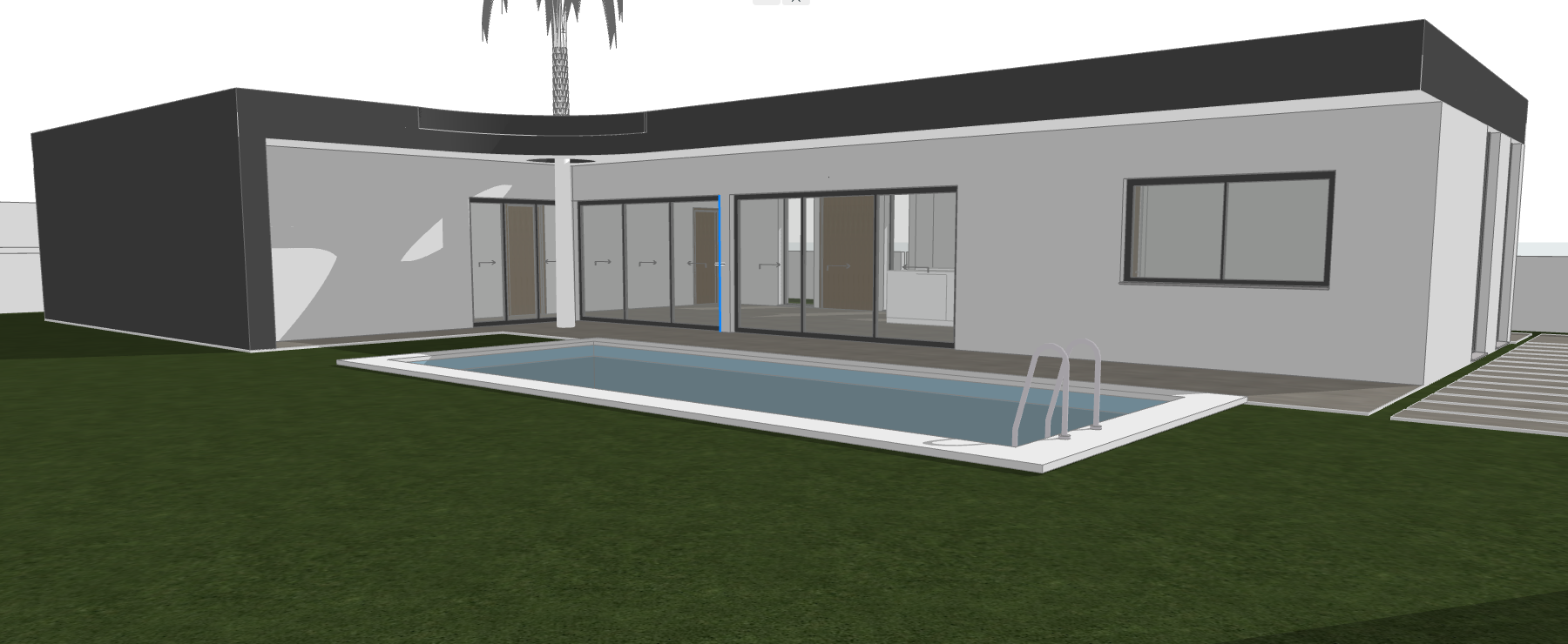 minimalist single story house light and heavy materials on the facades