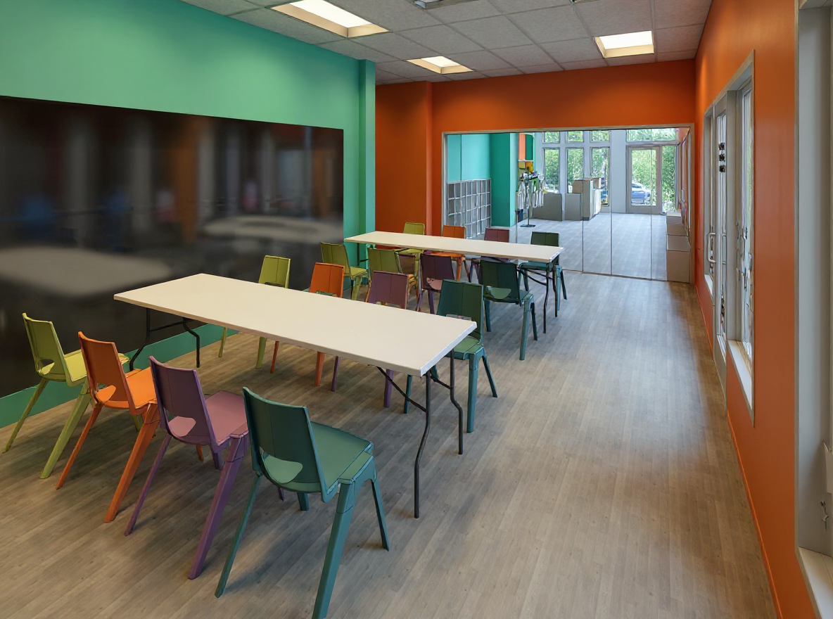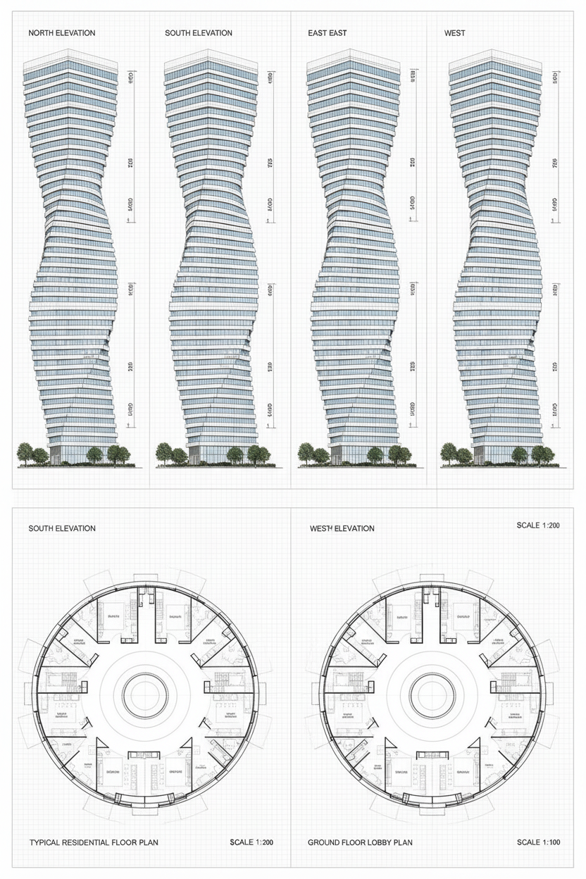 make metal balustrades at windows anthracite grey keep materials but make realistic roof should be grey concrete tiles in a typical stretcher bond plain cream areas should be white render cream brick should be buff common brick in cream grey brick should be dark grey common brick add sky and background trees add weather for sunny day with slight clouds add sky and background trees far right building where brickwork shown should be cream brick dont show any brickwork solider courses or details at window heads the last gable on right hand building should remain as gre brick as shown in original image cream brick should be bright and uniformly coloured where shown on image add a few slender trees a few metres tall spaced out and low level shrubs to grass area next to pavement which is light grey surface next to dark grey road add some people to the light grey pavement add some cars to dark grey road make road in foreground consistent with original image as straight line make sure all trees are laning on grass surface
