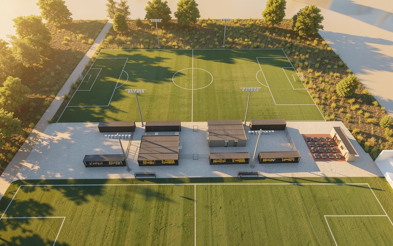 rural buildings with a mixture of buff brick and traditional red brick set within a rural landscape in the spring