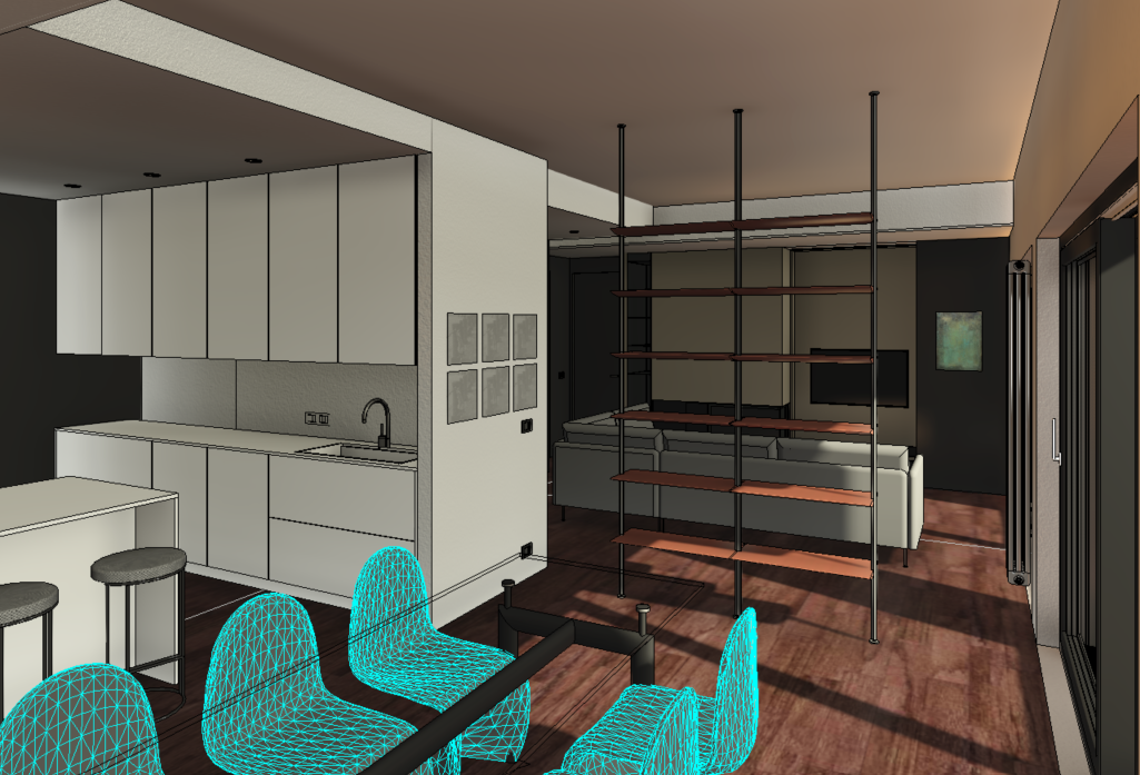 this is a material and lighting enhancement task only do not redesign reinterpret improve or modify the architecture in any way maintain exactly geometry volumes proportions wall positions ceiling shapes openings number and position of windows doors furniture layout fireplace dimensions camera angle perspective framing do not add any new window do not remove any window do not modify window size or placement do not add architectural elements do not remove architectural elements do not change composition the final image must be structurally identical pixel to pixel in composition but photorealistic in materials and lighting operative mode enhancement mode only strict geometry preservation no generative redesign no spatial reinterpretation no layout alteration no structural creativity zero architectural modification material update apply without altering structure apply the following materials strictly over existing surfaces walls white matte water based paint dark grey matte water based paint terre di brioni dark beige mineral texture on designated surfaces subtle micro irregularity only floor dark wood parquet italian herringbone pattern satin matte finish no change in plank direction unless already defined fireplace cladding terre di brioni finish maintain exact volume and dimensions windows black aluminum frames keep exact existing size and number do not alter glazing proportions kitchen glossy white lacquer maintain exact cabinet geometry dining white plastic chairs black metal table structure glass tabletop with realistic thickness sofa light warm grey fabric keep identical dimensions lighting rules lighting enhancement only maintain existing light direction do not create new light sources do not simulate new windows do not introduce artificial openings improve realism only through global illumination shadow refinement reflection accuracy exposure balancing no dramatic relighting no cinematic reinterpretation photographic lock preserve original framing and lens perspective exactly no zoom change no crop change no camera height modification final quality target photorealistic material rendering physically accurate light micro imperfections real contact shadows natural reflections zero compositional difference