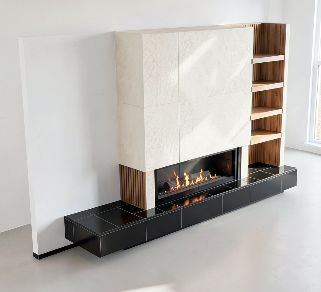 modern glass office building with a sleek design featuring reflective blue tinted windows and contrasting white structural lines the building is surrounded by lush green bushes and trees with a classic cobblestone path leading up to the entrance the sky is a vibrant blue with fluffy white clouds creating a bright and welcoming atmosphere include a parked black car near the sidewalk and ensure the overall ambiance is sophisticated and contemporary