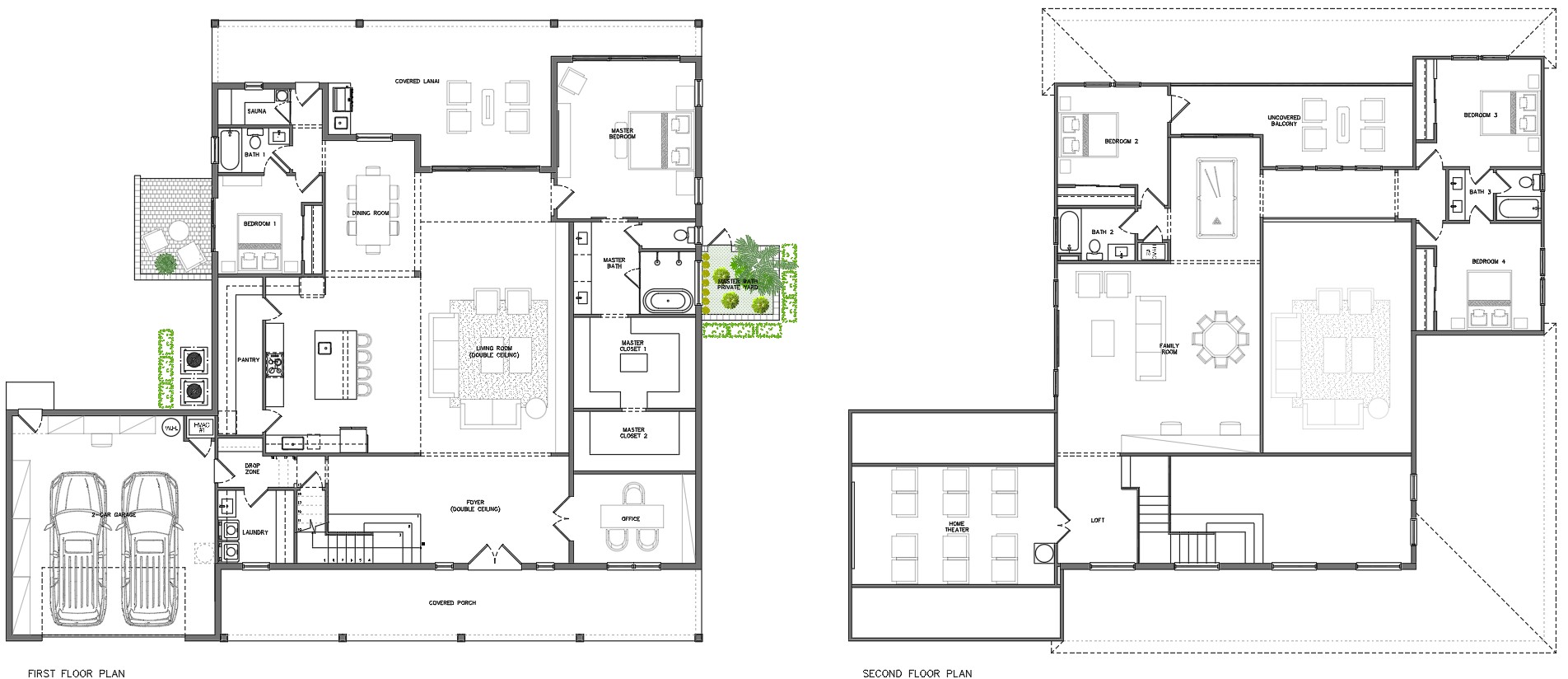 2 story house floor plans on first floor the floor is hardwood white oak everywhere the laundry and bathrooms have a nice light tiles the staircase to the second floor has a nice modern railing the master bathroom double shower has a nice shower glass with a free standing tub inside on the second floor the flooring is also white oak you can see the same staircase at the foyer below in the first floor you can see the living room from the second floor hallway with nice guardrails