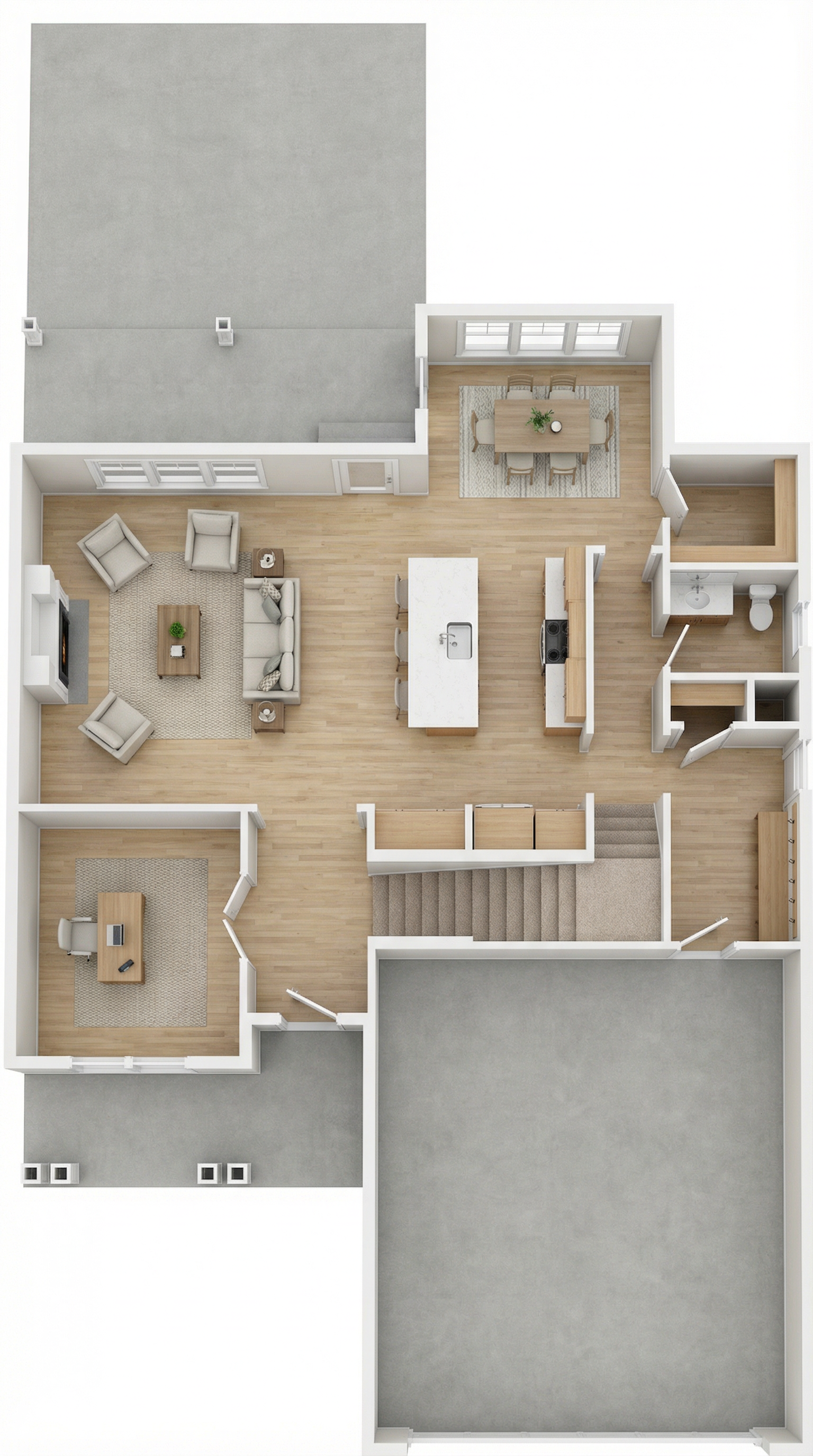 genau dieses rendering berarbeiten fotorealistisches innenraum foto exakt dieselbe perspektive und kameraposition wie das hochgeladene referenzbild 100 identische raumgeometrie exakt gleiche m belanordnung exakt gleiche verlegeart und richtung von parket wie vorlage exakt identische fensterpositionen mit gleichem ausblick durch die fenster weiches nat rliches tageslicht leicht schr g einfallende sonne durch die grossen fenster geschlossene r ume k nstlich ausleuchten sanfte realistische schatten blickrichtung ist nach osten sonnenlicht kommt von s den realistische materialien echte holztexturen stoff mit leichten gebrauchsspuren hochwertige oberfl chenreflexionen kleine gr npflanzen lavabo aus marmor collemandina grigio dahinter je eine vola standarmatur fs2 edelstahl badewanne ersetzen mit reflex von antonio lupi in weiss mit standarmatur fs1 edelstahl links hinten bei den lavabos hat es einen schrank f r badet cher schrankfronten alle grauglas gl nzend grifflos parket vergraut vollkommen rahmenloser spiegel alle sichtbaren w nde sind sichtbeton graues badetuch l ssig ber badewanne werfen sehr modernen minimalistischer look nat rliche farbwiedergabe golden hour feeling das bild muss wie eine professionelle fotografie aussehen es soll ein echtes und reales foto sein canon eos r5 35 mm festbrennweite f 2 8 hyperrealistisch dslr qualit t raw aufnahme 8k aufl sung extrem scharf perfekte tiefensch rfe professionelle architekturfotografie