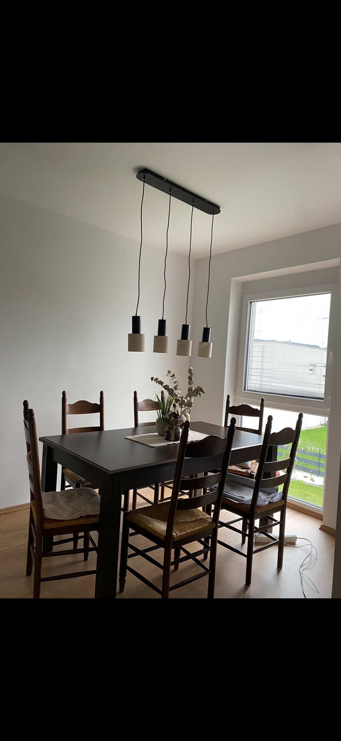put in chairs and table as in the reference images decorate my walls in an asthetic calm neutral design
