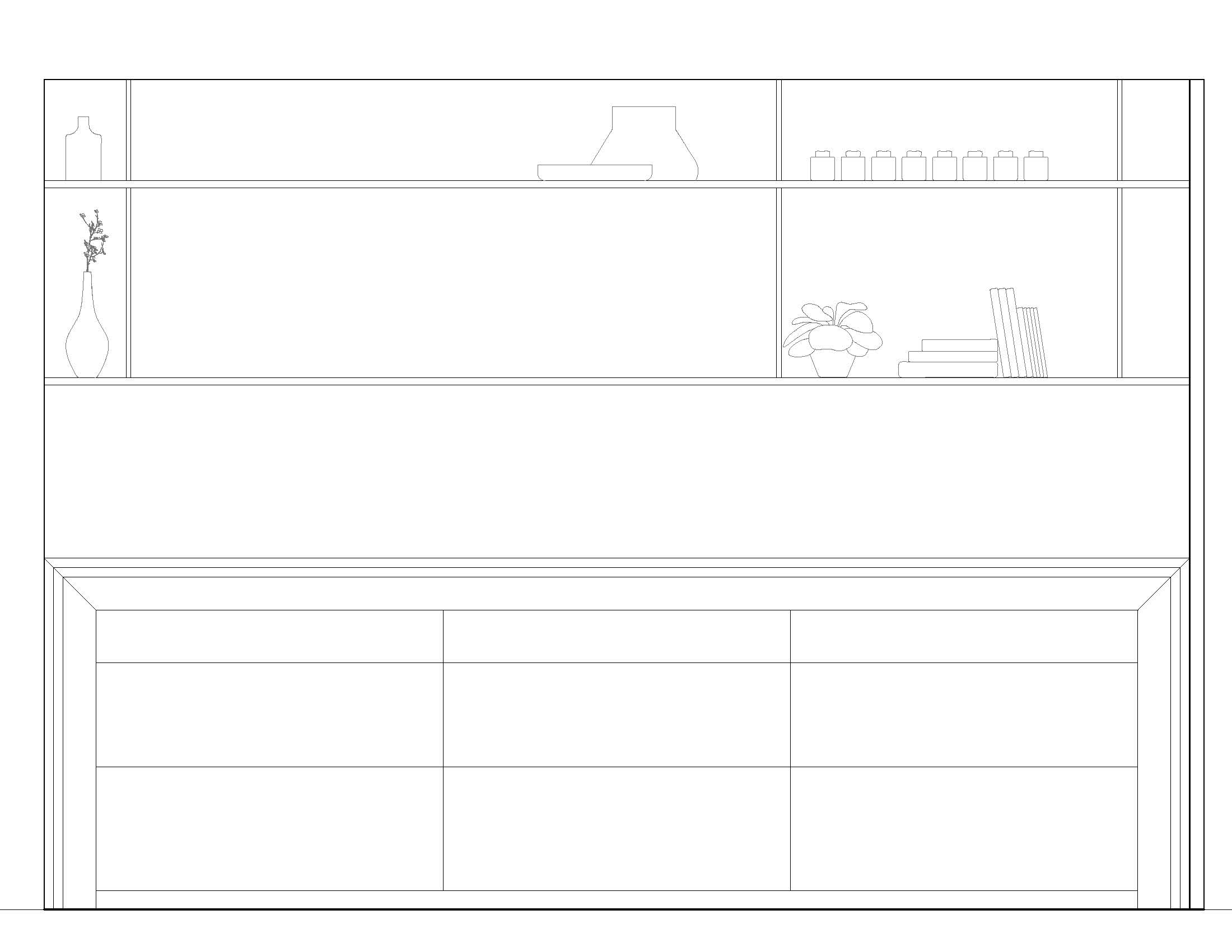 render this elevation the cabinet is a black walnut with brushed brass pulls the stone stope returns down on both sides and is a black splash the stone is a deep dark red marble with white veining there is a window contained in the large rectangle on the left the shelving is a brushed brass finish