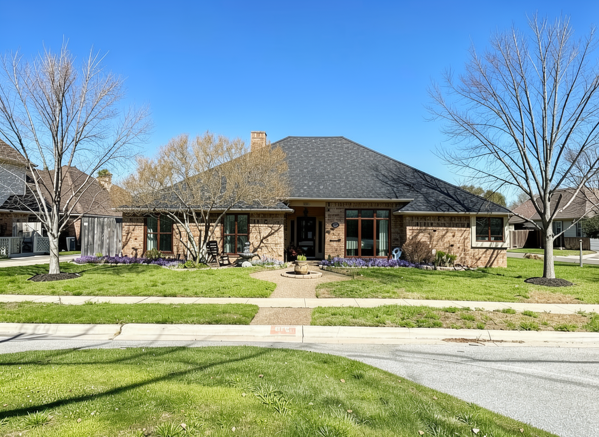 change three tall windows to fixed glass with dark bronze color frames do not change window on the left side of house