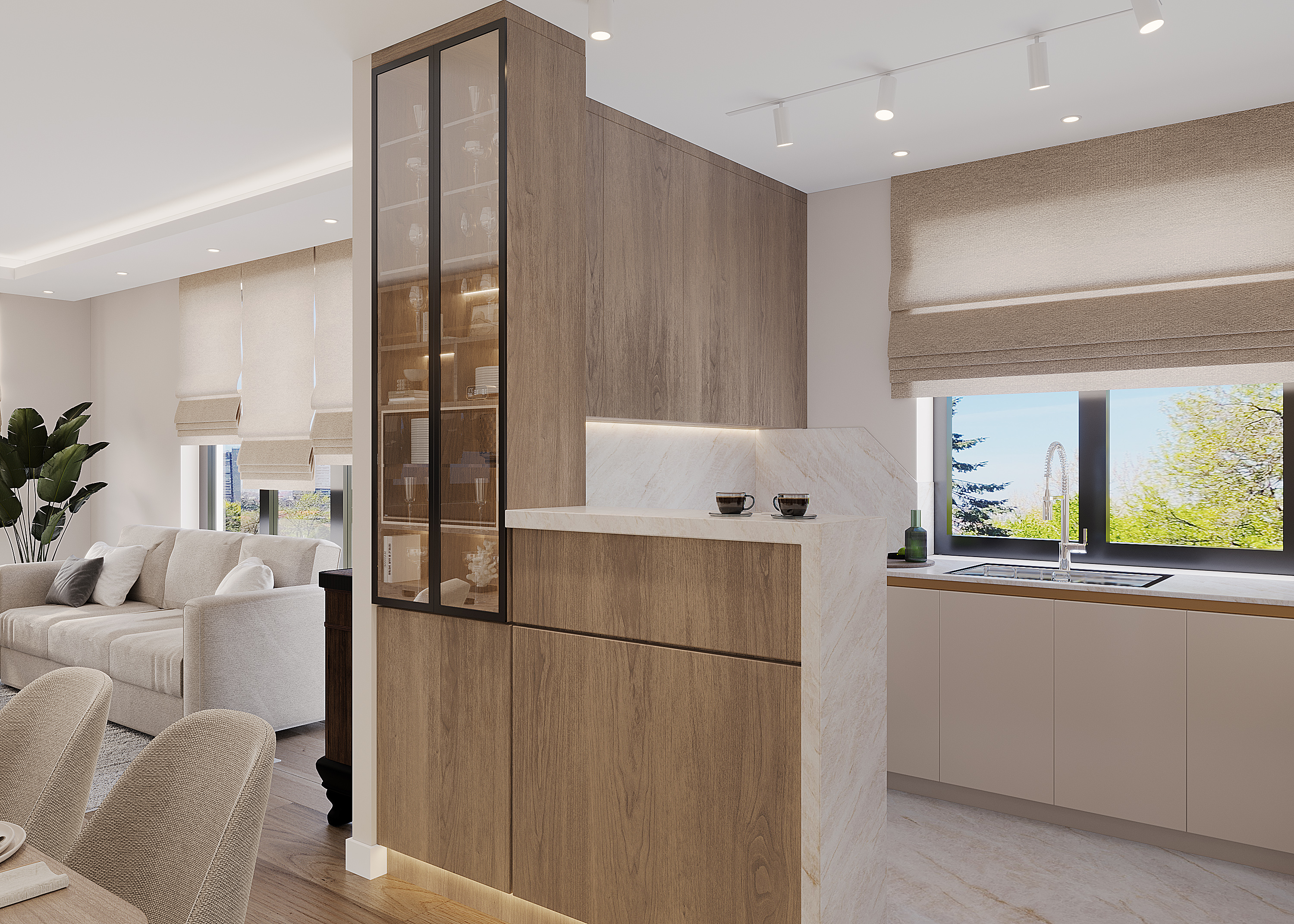 photorealistic render physically based rendering pbr materials realistic light bounce contact shadows natural color grading slight lens distortion depth of field architectural photography style no cgi look